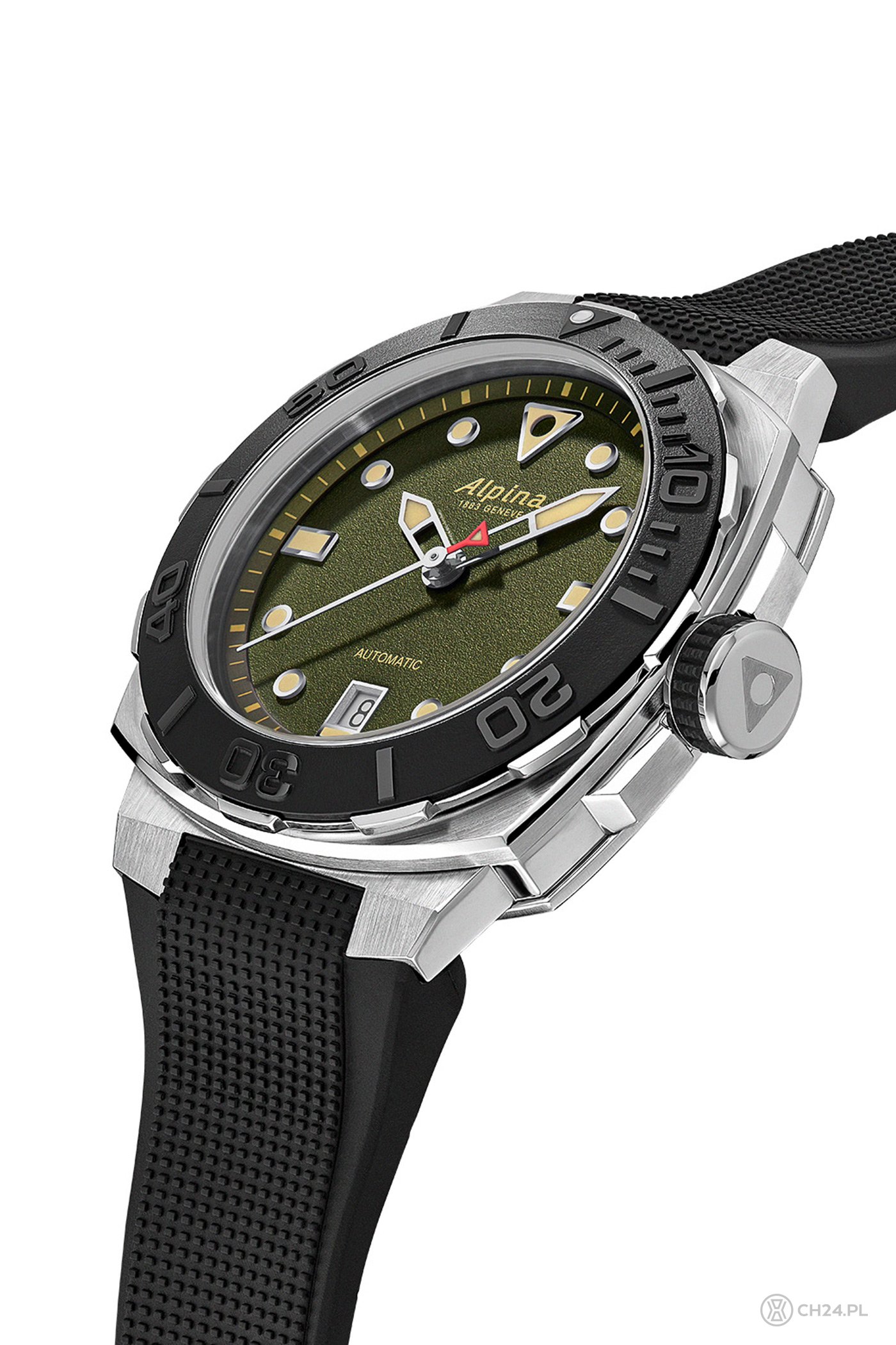 Na odbywających się na początku września Geneva Watch Days, marka Alpina pokazała dwie wersje tego modelu: z czarną tarczą i z tarczą w kolorze khaki. Podobnie jak w pierwowzorze, koperta obu wariantów ma średnicę 39 mm (wysokość 12,65 mm) i jest wodoszczelna do 300 m. Także i tu mamy zakręcaną koronkę, częściowo pokrytą czarną okładziną ułatwiającą jej obsługę oraz jednostronnie obrotowy pierścień z głębokimi nacięciami i matową, ceramiczną wkładką.