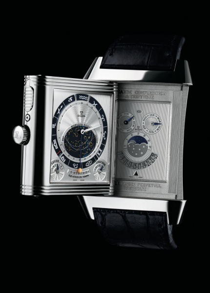 Reverso grande complication à triptyque jest pierwszym zegarkiem w historii, który prezentuje trzy twarze czasu na trzech płaszczyznach: czas cywilny, czas gwiezdny i czas wieczny. Jego mechaniczny mechanizm z naciągiem ręcznym, umieszczony w legendarnej odwracalnej kopercie, przedstawia subtelność unikalnej konstrukcji.