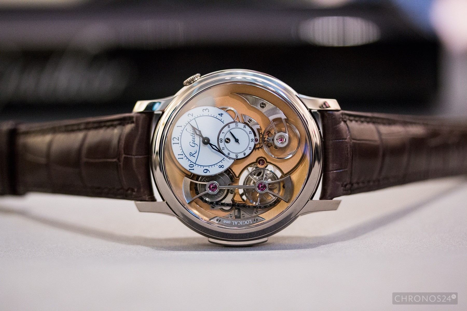 Do momentu uruchomienia własnej marki, urodzony i wychowany w Le Sentier (Vallee de Joux) Gauthier zajmował się obsługą obrabiarek CNC i produkcją komponentów dla innych firm zegarkowych. Co ciekawe sam z wykształcenia jest mikro-inżynierem (z dyplomem MBA), a zegarmistrzostwo to raczej umiejętność nabyta i sprawnie rozwijana z czasem… i pasją. Za sygnowanymi nazwiskiem Gauthiera czasomierzami stoi filozofia technicznej doskonałości i ręcznego wykończenia na najwyższym możliwym poziomie. O ich klasie świadczy uznanie kolekcjonerów i – w bardziej wymowny sposób – nagroda Grand Prix d’Horlogerie de Geneve 2013 dla „Najlepszego Męskiego Zegarka z Komplikacjami”. Zarówno o serii Prestige jak i Logical One pisaliśmy już więcej TUTAJ, ale na Baselworld mieliśmy wreszcie okazję poznać Romaina Gauthiera osobiście i obejrzeć zegarki „na żywo”.