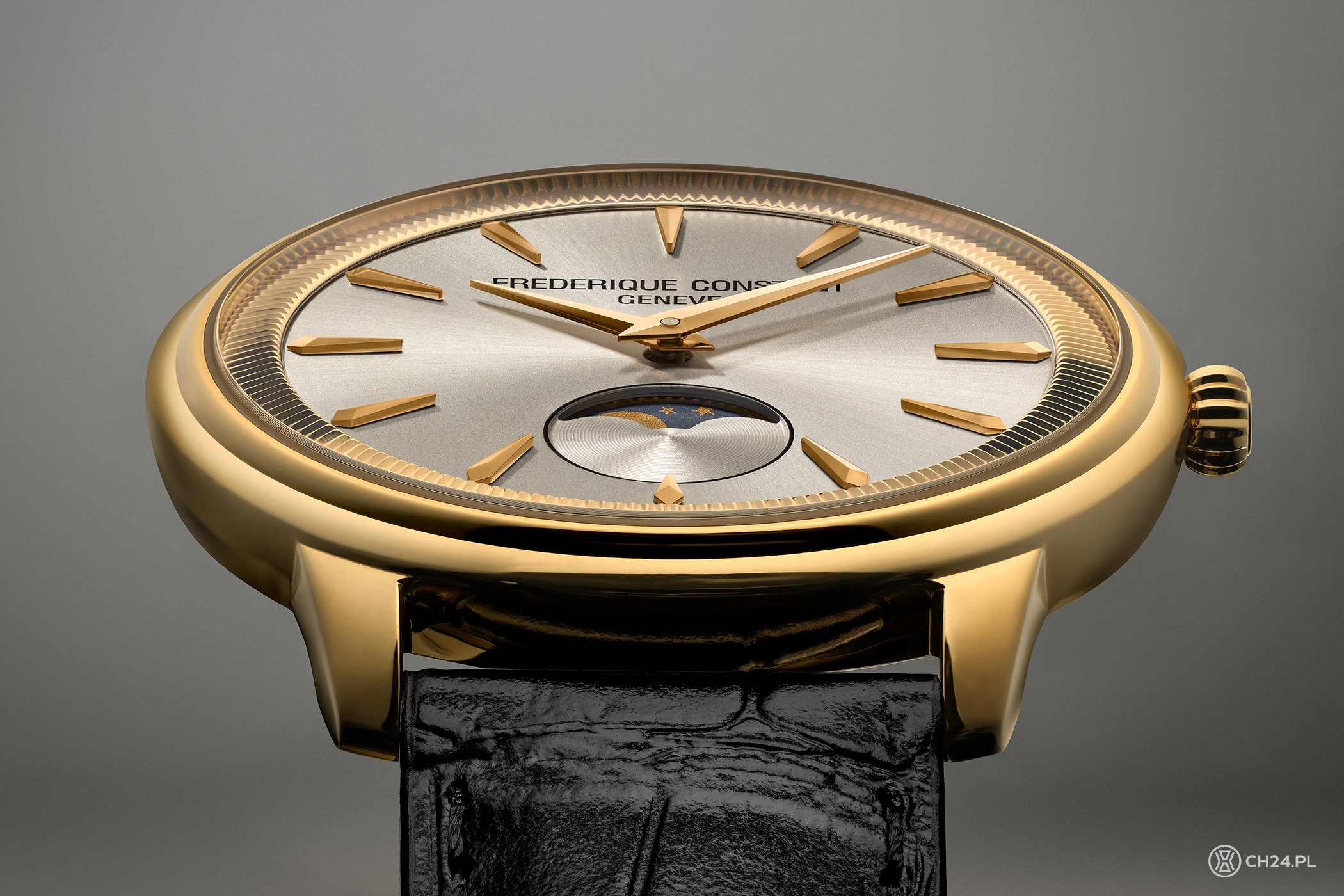 Wersje sprzed roku miały stalowe koperty, tarcze w trzech klasycznych kolorach (czerni, granatu i srebra) i pasujące do nich, skórzane paski. Kilka dni temu Frederique Constant pokazał dwa nowe modele z tej serii: jeden w kopercie pokrytej powłoką PVD w kolorze żółtego złota oraz drugi, w stalowej obudowie, która przechodzi w utrzymaną w stylu lat 70. XX w. bransoletę milanaise.