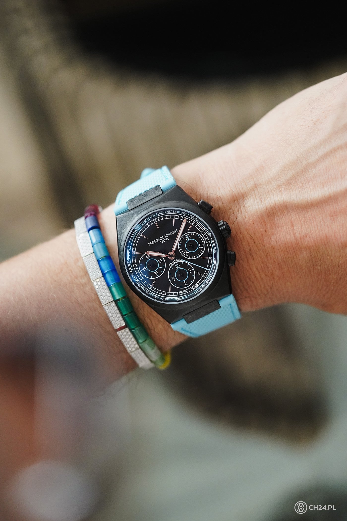 George Bamford się nie zatrzymuje i angażuje swoje atelier do coraz to nowych projektów i współprac. Najnowsza w portfolio jego marki ogłoszona została oficjalnie podczas Dubai Wach Week. Bamford połączył siły z manufakturą Frederique Constant, a na warsztacie wylądował sportowy chronograf Highlife, jeden z nowych hitów genewskiego producenta. Zamiast jednak po prostu opakować go w ceramikę albo ostatnio mocno nadużywany (w branży) karbon, wymyślono zupełnie nowy proces technologiczny, wykorzystujący tytan.