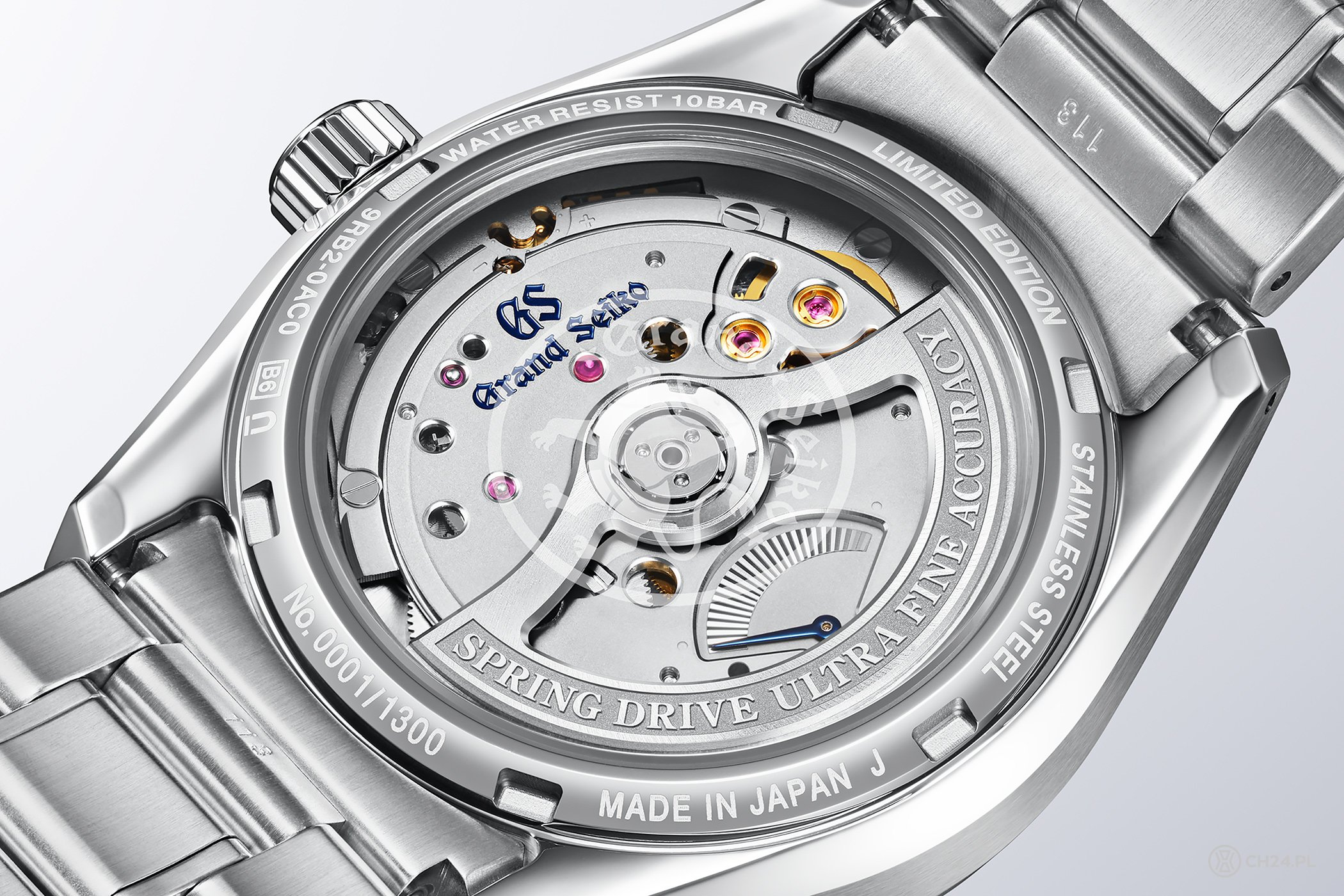 Teraz dołącza do nich kolejny model, czyli Evolution 9 Spring Drive U.F.A. Limited Edition: SLGB005, który na pierwszy rzut oka różni się wyłącznie kolorem tarczy. Jego koperta ma bowiem identyczne parametry: średnicę 37 mm, wysokość 11,4 mm, wodoszczelność do 100 m i takie samo wykończenie (szczotkowanie i polerowanie techniką Zaratsu). Na czym więc polega różnica? Na materiale, z którego są zrobione koperta i bransoleta, ponieważ w tej wersji użyto opatentowanego przez Grand Seiko stopu stali, który jest 1,7 razy odporniejszy na korozję od standardowej stali nierdzewnej stosowanej w zegarkach i wyróżnia się dużo jaśniejszą barwą (Grand Seiko nazwał go Ever-Brilliant Steel).