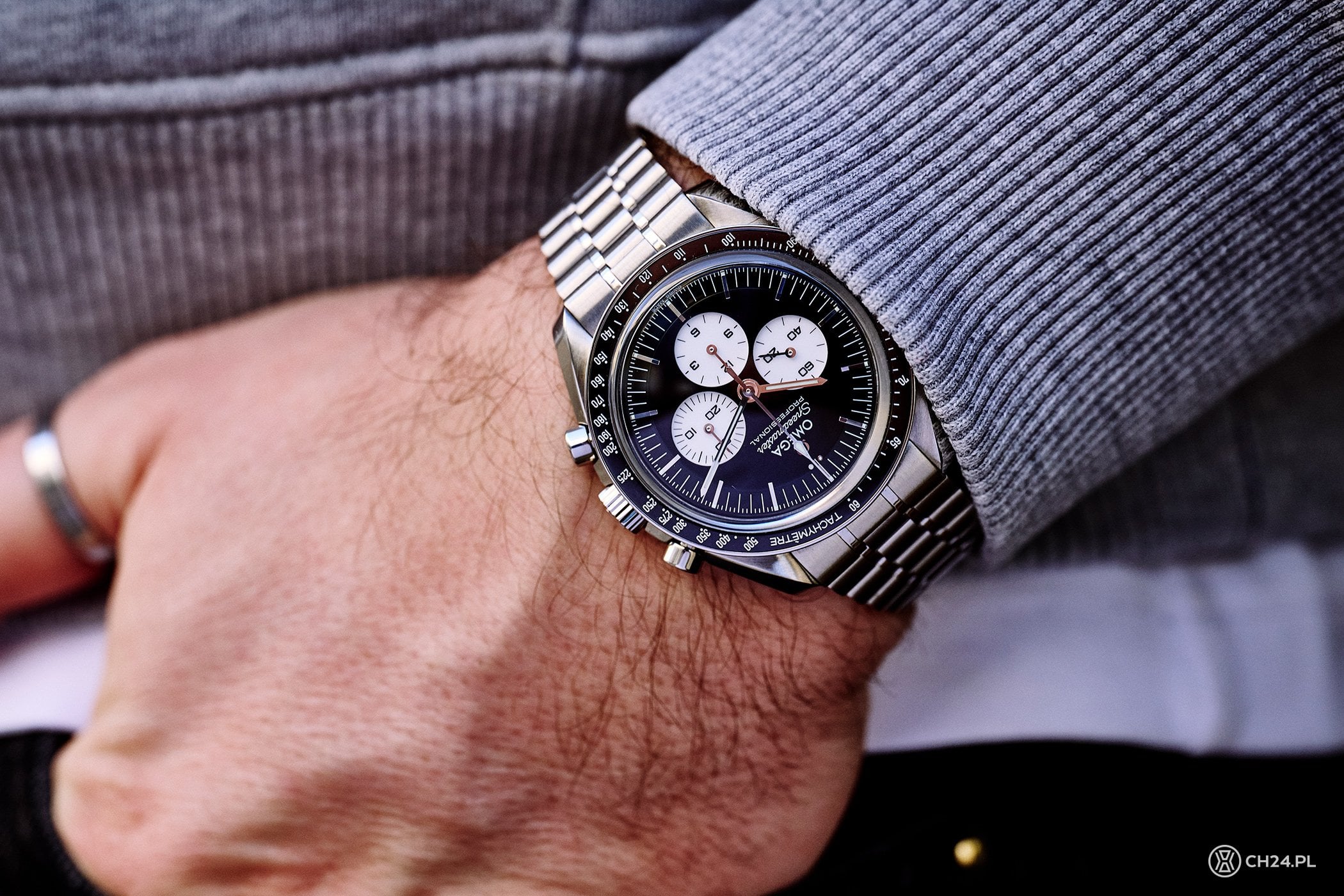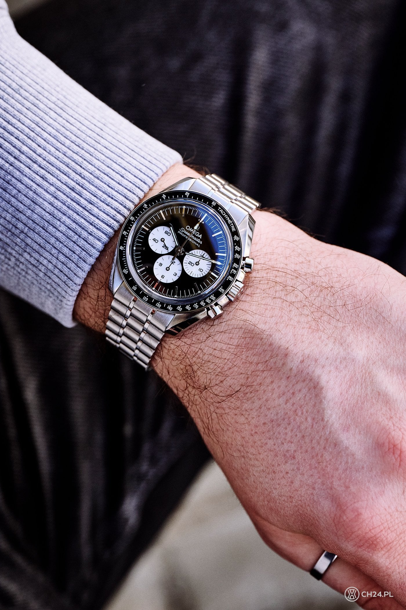 Cena zegarka w stalowej kopercie jest więc o 6 400 PLN wyższa niż standardowego modelu z szafirowym szkłem. I wydaje się to zasadne zważywszy na wykończenie tarczy i ceramikę, które jednak wyraźnie podnoszą koszty. A dla kogo to wariant? Dla wszystkich tych, którzy kochają księżycową historię Speedmastera, ale jego klasyczną wersję uznają za nieco zbyt powściągliwą estetycznie. „Reverse Panda” zdecydowanie błyszczy, ale w ten bardzo odpowiedni, elegancki sposób. Jestem tez sobie w stanie łatwo wyobrazić, że opisywana Omega na eleganckim, skórzanym pasku wyglądałaby znakomicie.
