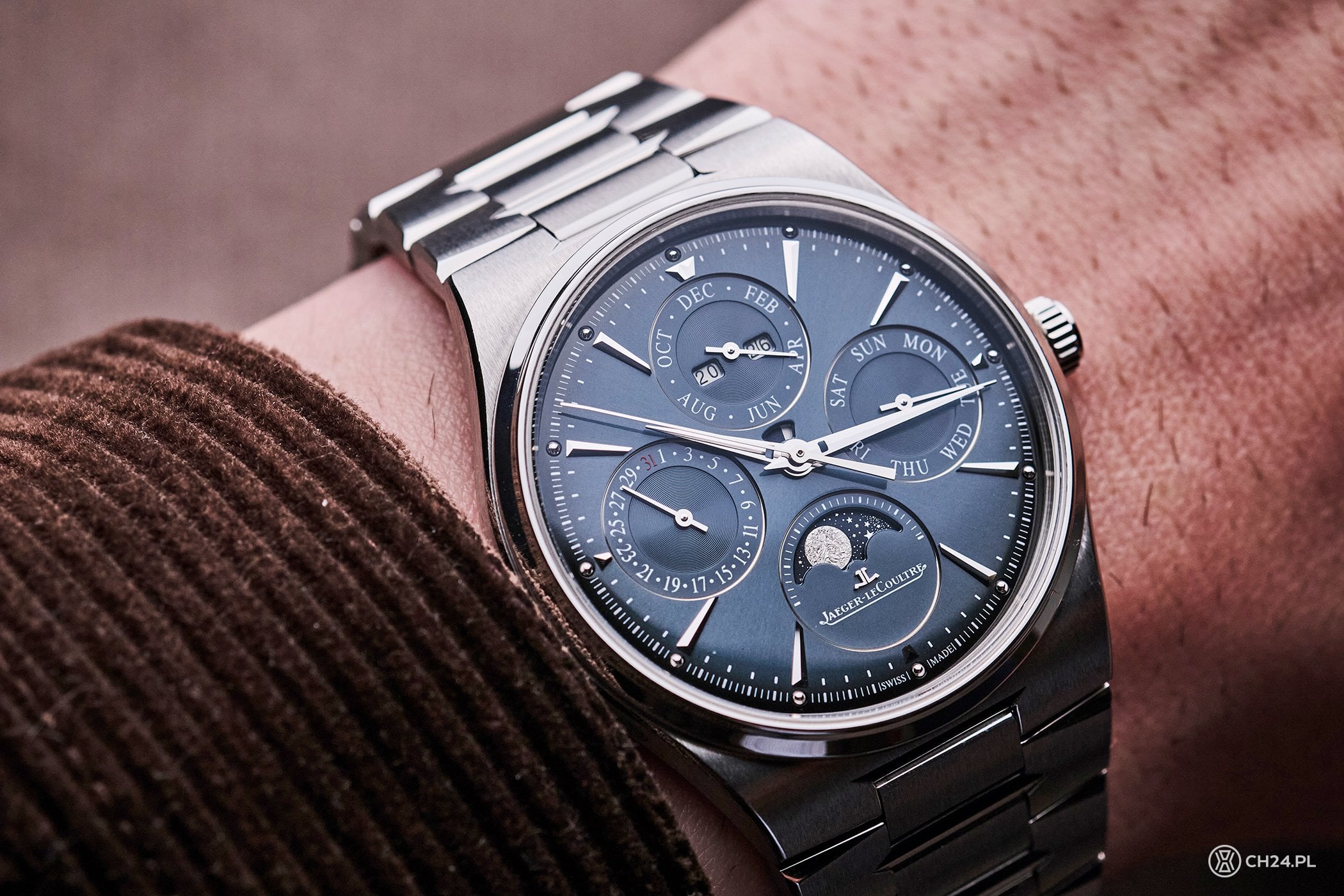 Wisienką na torcie premierowej kolekcji Master Control Chronometre jest model z manufakturowym, wiecznym kalendarzem. Z tzw. Wielkich Komplikacji, to właśnie ta pojawia się w sportowych zegarkach najczęściej i choć ciężko stwierdzić czemu, tutaj pasuje doskonale.