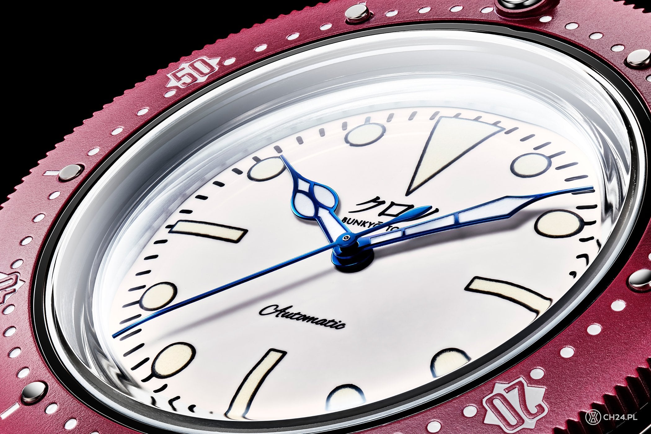 Dwie koperty – „codzienna” plus „nurkowa” – oraz klarowna tarcza z dużymi indeksami, wyraźną podziałką minutową i katedralnymi wskazówkami. Model Diver’s to „dwa zegarki” w jednym, według wizji Hajime Asaoki.