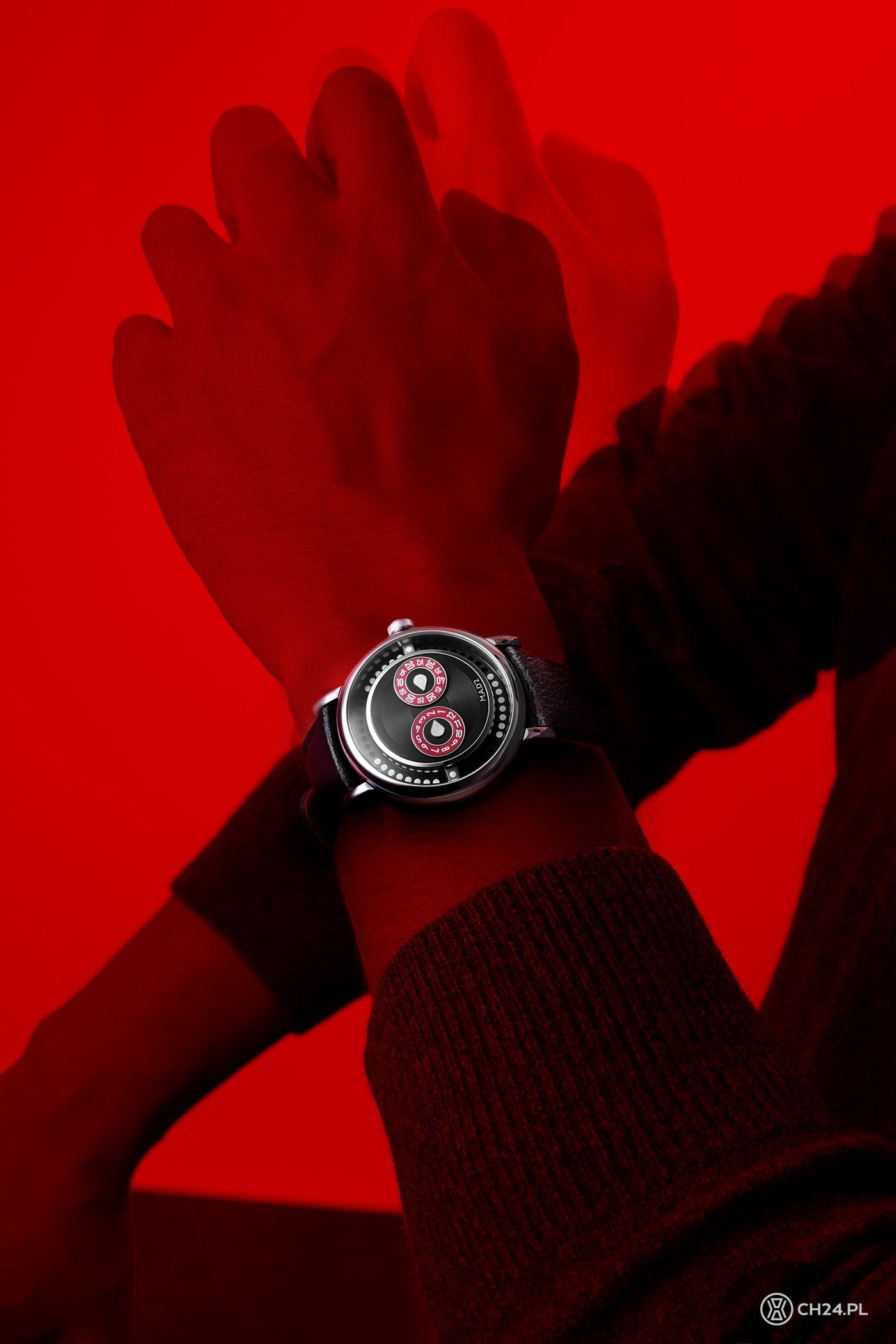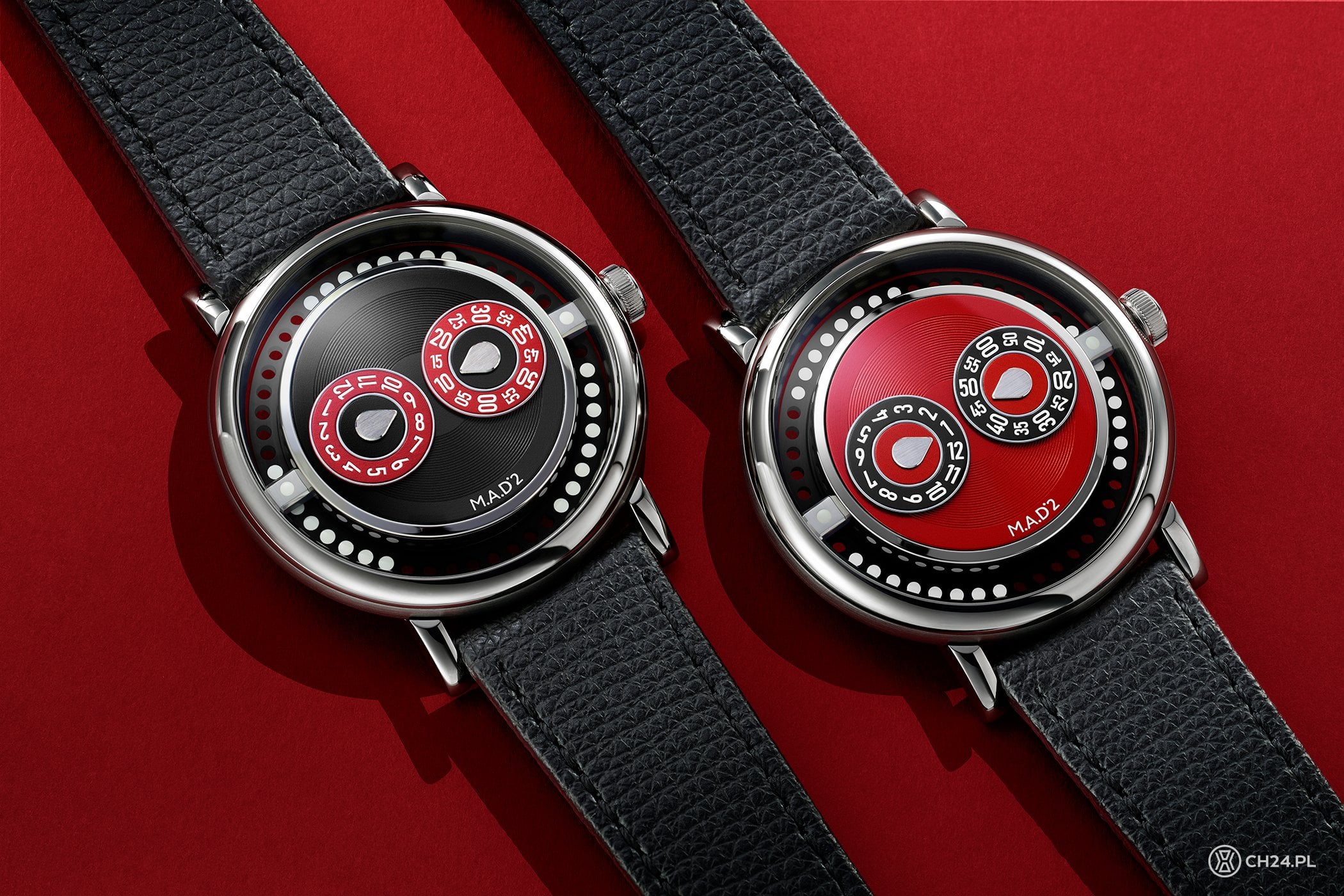Inspirowany DJ-skim mikserem, winylami i klubową muzyką projekt pod nazwą M.A.D.2 dołączył do kolekcji M.A.D. Editions rok temu. Stoi za nim Eric Giroud, szwajcarski projektant od lat związany z wieloma szwajcarskimi markami, w tym z MB&F – manufakturą odpowiedzialną za budżetowe kreacje spod znaku M.A.D. Editions. Po mocno szalonym M.A.D.1, model nr 2 przyniósł znacznie bardziej stonowany, choć nie mniej nietuzinkowy projekt, w którym centralną rolę odgrywają dwa obrotowe dyski, odpowiadające za wskazanie aktualnej godziny oraz minut.