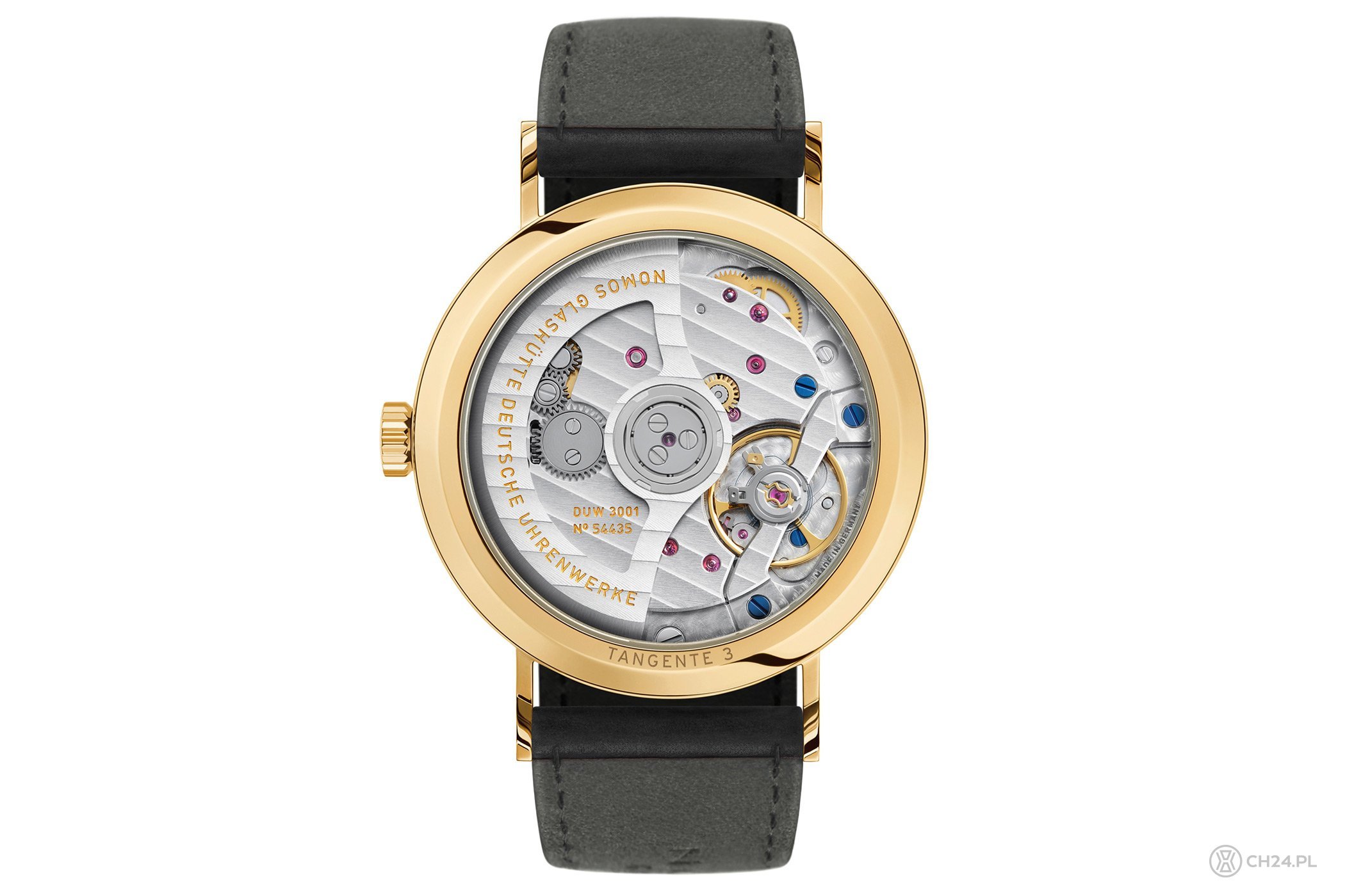 Jeżeli chodzi o stronę mechaniczną – tutaj nic się nie zmienia i za wskazania godzin, minut oraz sekund odpowiada widoczny pod przezroczystym deklem kaliber DUW 3001 z automatycznym naciągiem i 43-godzinną rezerwą chodu. Stworzony we własnej manufakturze mechanizm, bardziej znany pod nazwą neomatik, ma autorski wychwyt Nomosa (tzw. Swing System) i pracuje z częstotliwością 21 600 wahnięć na godzinę (3 Hz).