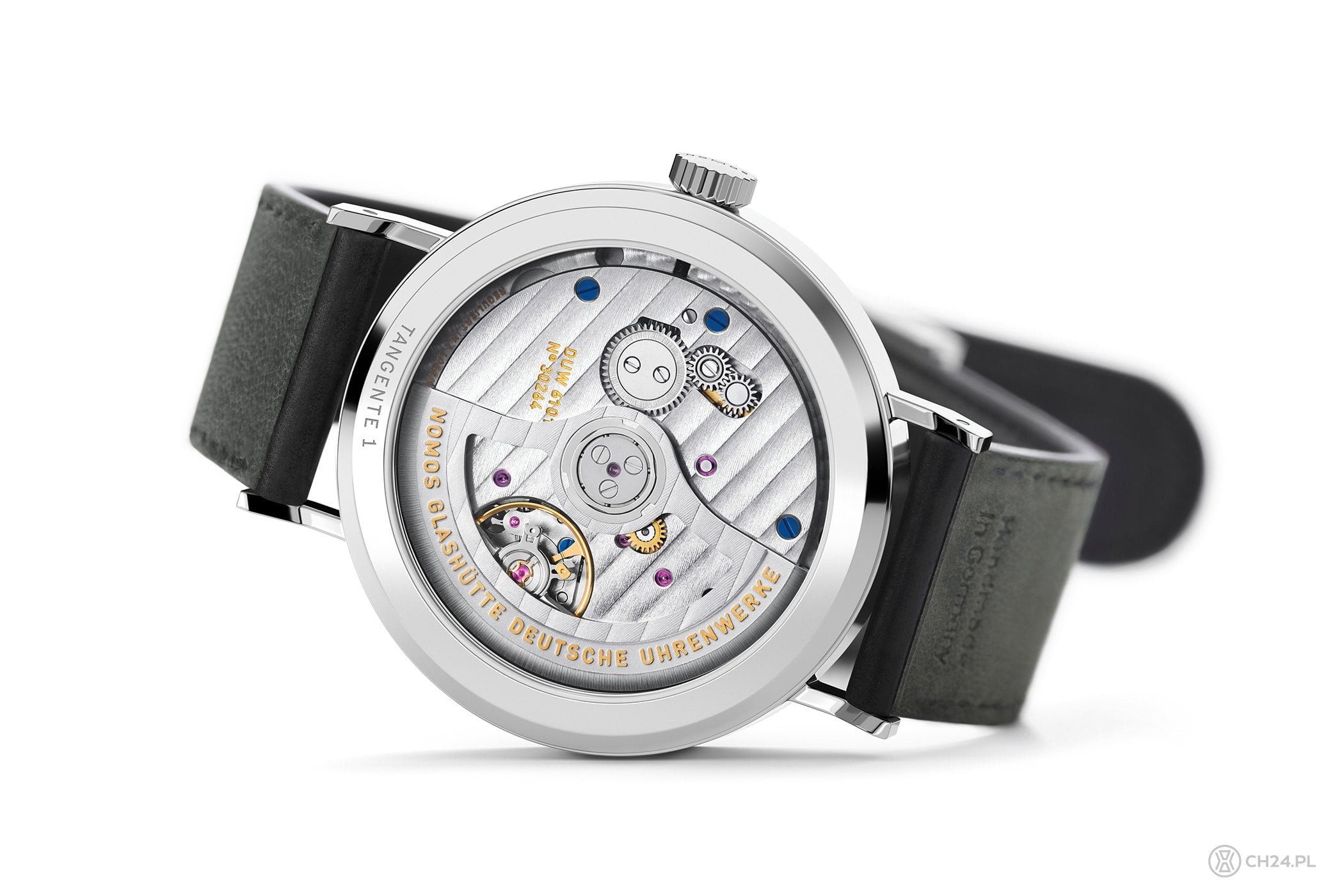 Jeżeli chodzi o stronę mechaniczną, to za wskazania godzin, minut, sekund i datownika odpowiada, widoczny pod przezroczystym deklem, kaliber DUW 6101 z automatycznym naciągiem, dwukierunkowym wahnikiem i 42-godzinną rezerwą chodu. Stworzony we własnej manufakturze DUW 6101 ma autorski wychwyt Nomosa (tzw. Swing System) i pracuje z częstotliwością 21 600 wahnięć na godzinę (3 Hz).