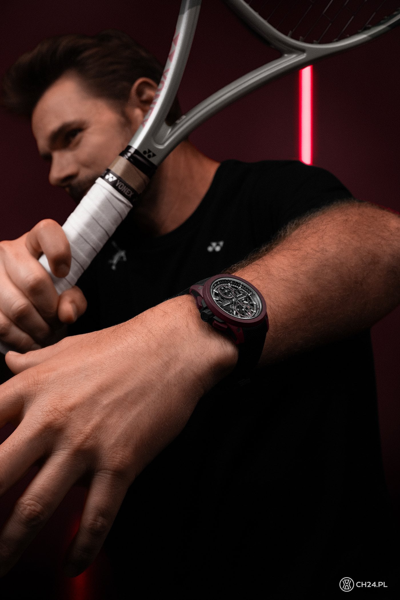 A, jak wiadomo, zegarek mechaniczny plus wstrząsy (na przykład podczas gry w tenisa) równa się wizyta w serwisie. Dlatego producenci w różny sposób próbują rozwiązać ten problem. Jednym z nich jest odpowiednio zaprojektowana koperta (najlepiej zrobiona z lekkiego materiału) oraz specjalne amortyzatory chroniące mechanizm. Przykład?