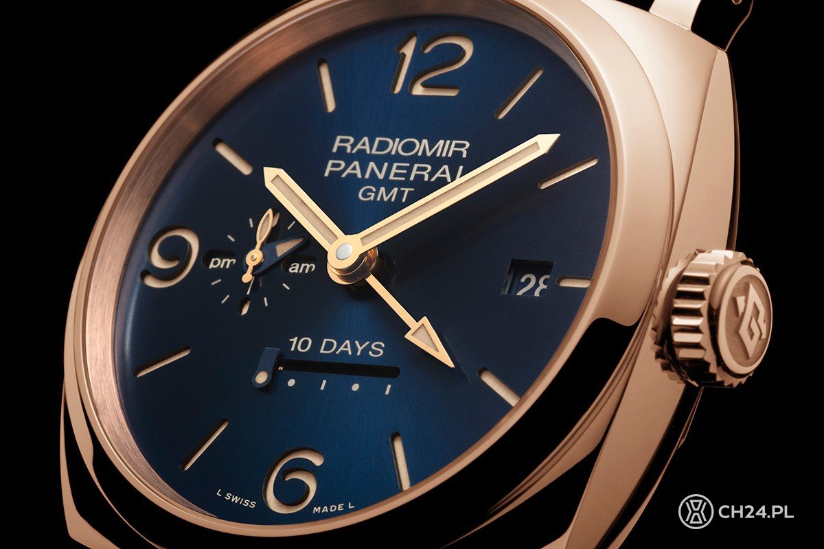 Drugi z Luminorów – Luminor 1950 10 Days GMT Automatic (PAM00689) – otrzymał także stalową kopertę (WR100m), tym razem o średnicy 44mm. Większy rozmiar tłumaczy m.in. poziom skomplikowania pracującego wewnątrz mechanizmu P.2003. Wspomniana konstrukcja to automatyczny werk z 10-dniową rezerwą chodu (ze wskaźnikiem widocznym w dolnej części tarczy), wskazaniem czasu w drugiej strefie, wskazaniem 24h oraz datą. Do butików trafi w sumie 300 egzemplarzy. Za jeden z nich trzeba będzie zapłacić 13.000EUR (~56.700PLN).