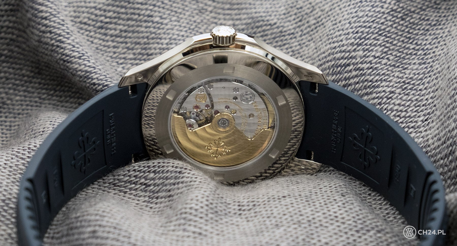 W związku z tym, że do napędzania zegarka użyto mechanizmu 324 SC (czyli kalibru stosowanego we wcześniejszym, mniejszym Aquanaucie) okienko datownika siłą rzeczy widoczne jest bliżej centralnej części tarczy. Poza tym werk to 4-Hercowowa jednostka z 45-godzinną rezerwą chodu, balansem Gyromax® i złotym, nakręcającym wszystko obrotem w jednym kierunku wahnikeim.
