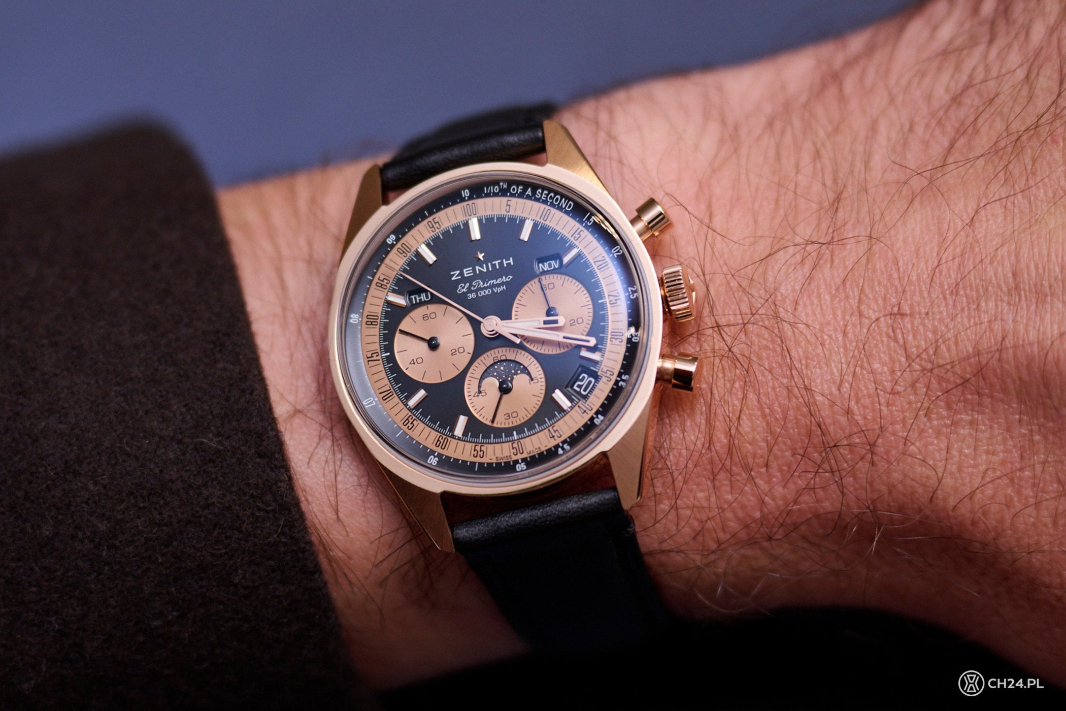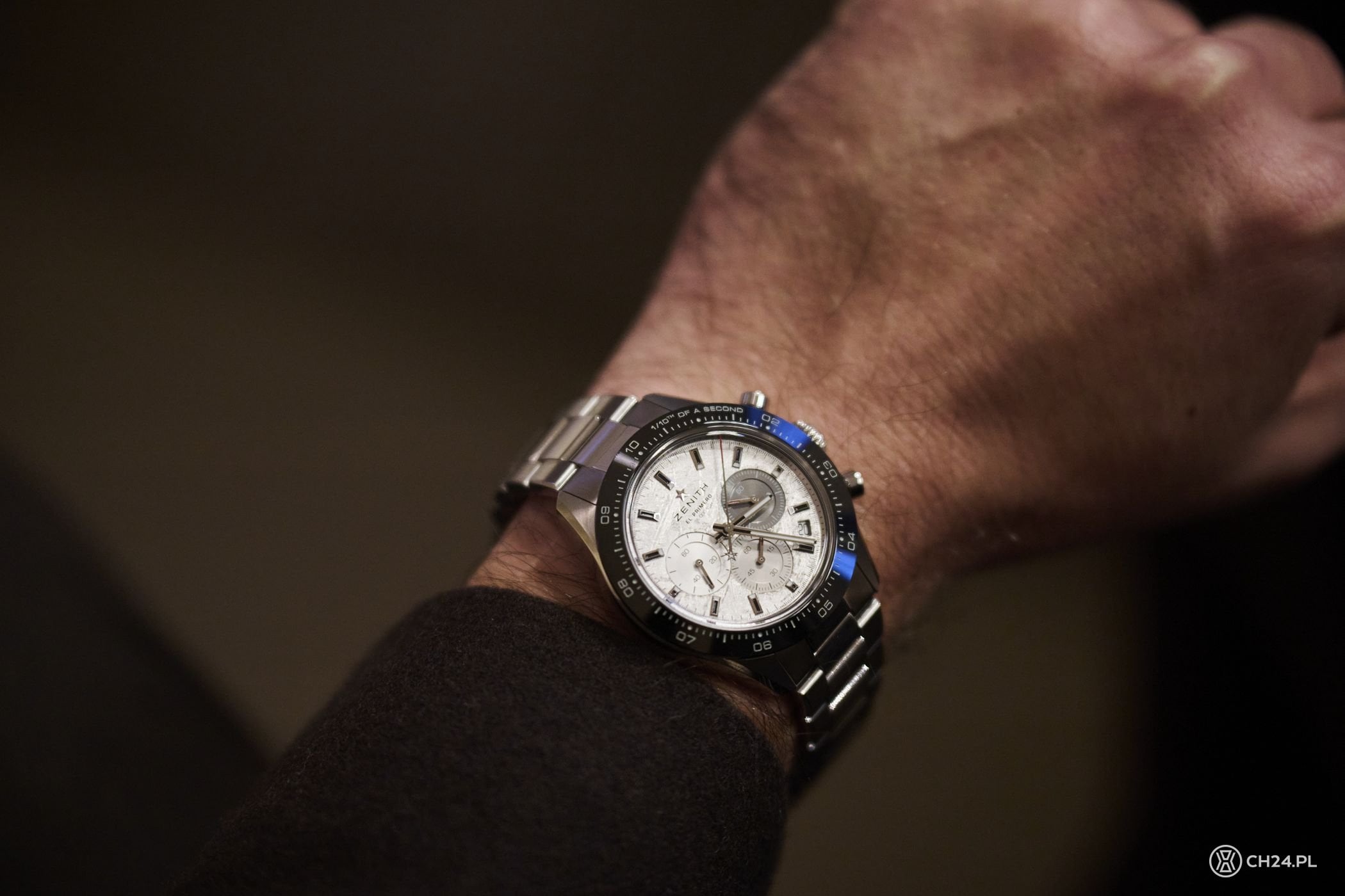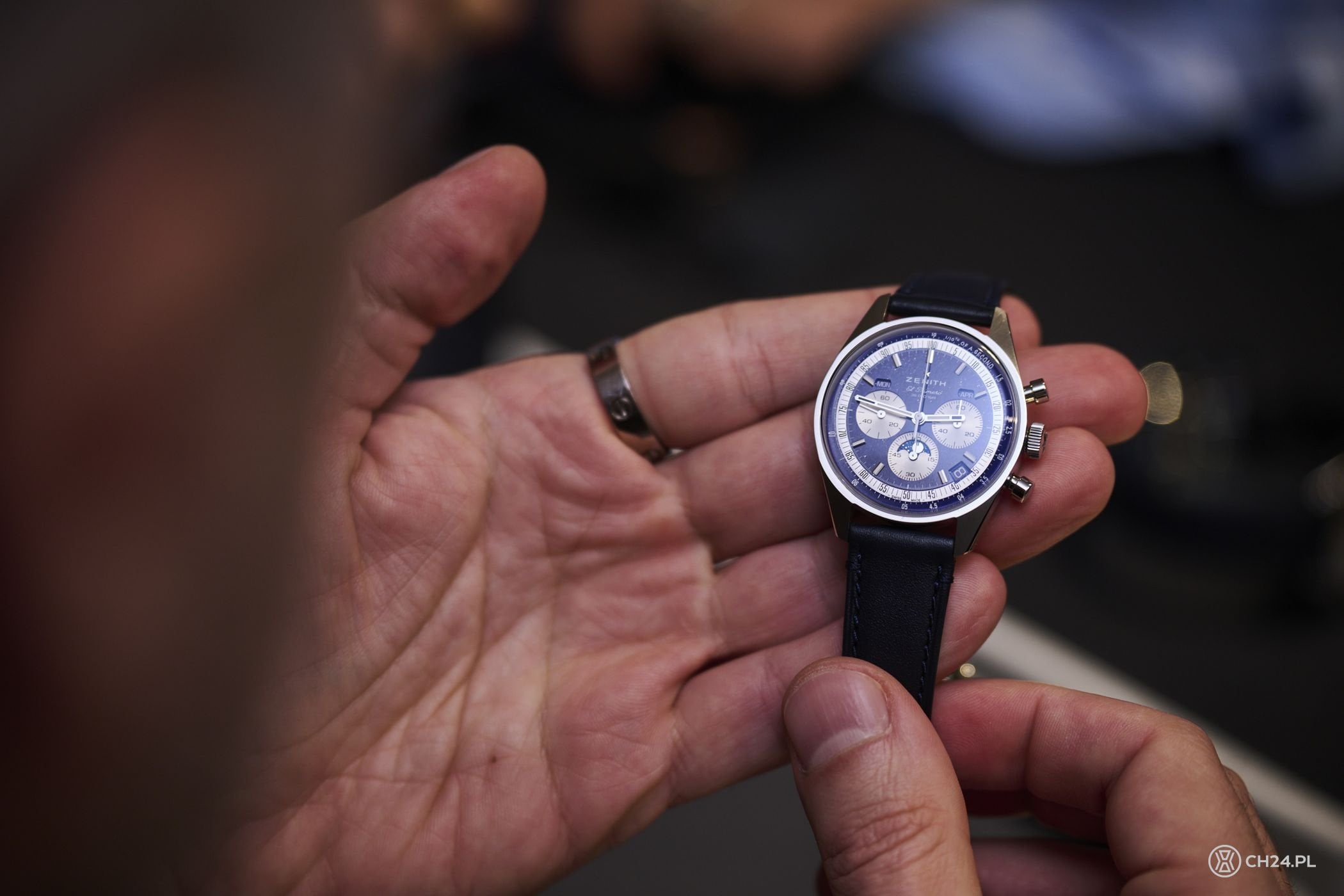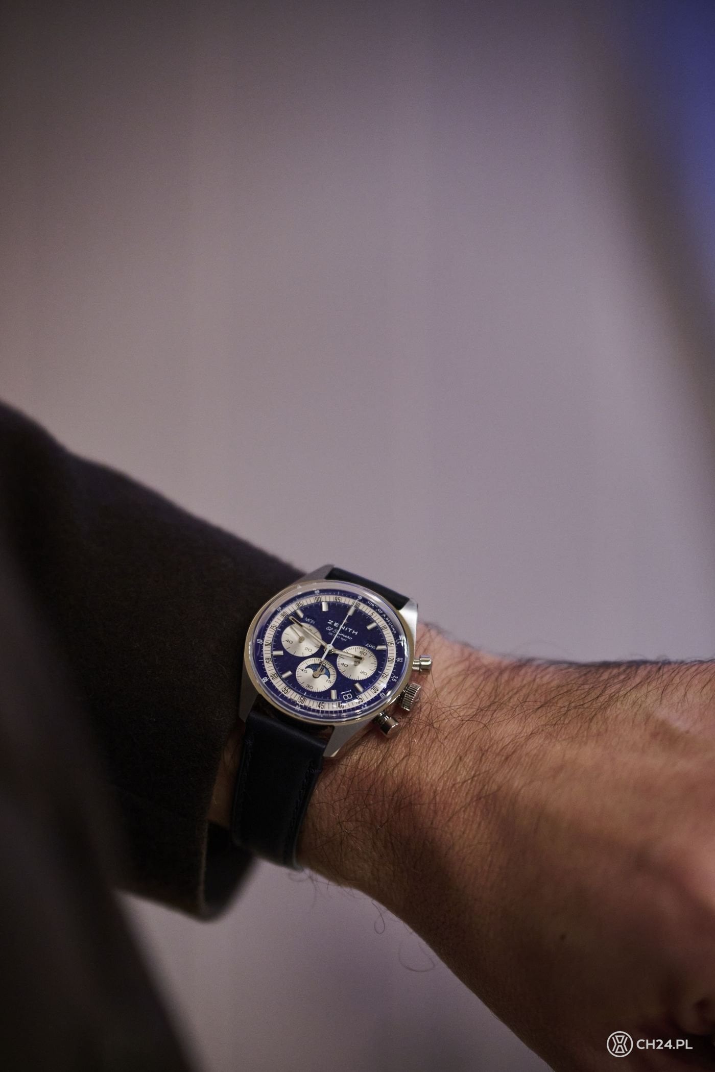 Pierwszą część spotkania wypełniła prezentacja wybranych modeli z aktualnej kolekcji. Na szczególną uwagę zasługiwał Chronomaster Original Triple Calendar w 38-milimetrowej kopercie z różowego złota, zestawiony z czarną tarczą. W tej opcji udało się umiejętnie połączyć sportowy charakter, jaki zegarkowi nadaje użycie stopera, z elegancją, którą gwarantuje cenny kruszec. Za wszystkie wskazania – dzień tygodnia, miesiąc, datę oraz fazy Księżyca – odpowiada tu znany mechanizm El Primero w wersji z potrójnym kalendarzem. Jeśli chcecie poznać jego historię, zachęcamy do przeczytania artykułu TUTAJ.