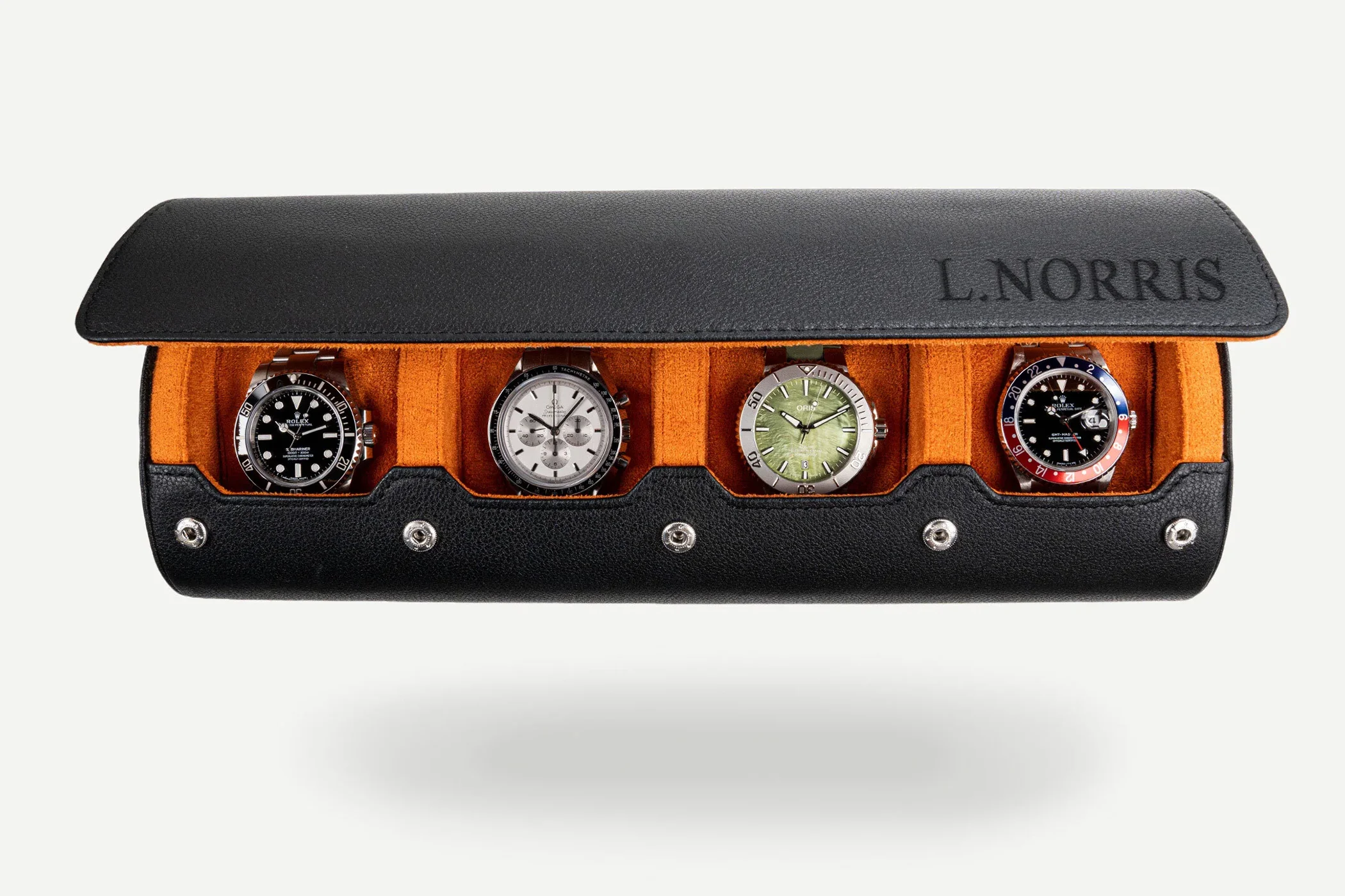 Wygodna, wykończona skórą rolka na jeden, dwa, trzy albo cztery zegarki. Oferowana w kilku ciekawie zestawionych kombinacjach kolorystycznych, z możliwością dodatkowej, np. imiennej personalizacji.