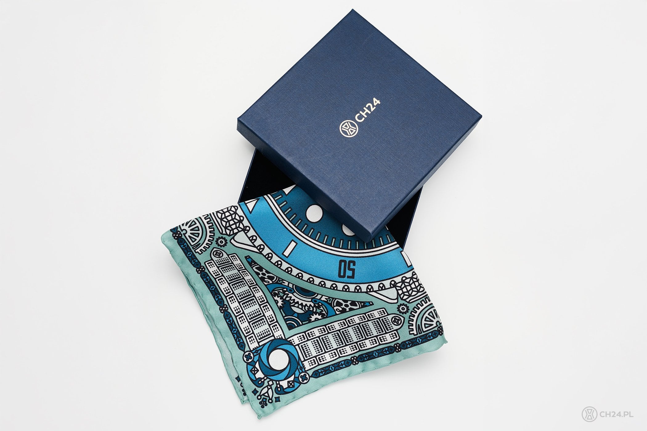 Wykonane z włoskiego jedwabiu lub jedwabiu z wełną poszetki, z grafikami zaprojektowanymi przez cenionego polskiego ilustratora Jana Kallwejta. A na nich m.in. Aston Martin Jamesa Bonda, kwadratowy Heuer Monaco Steve’a McQueena i legendarny, księżycowy Speedmaster.