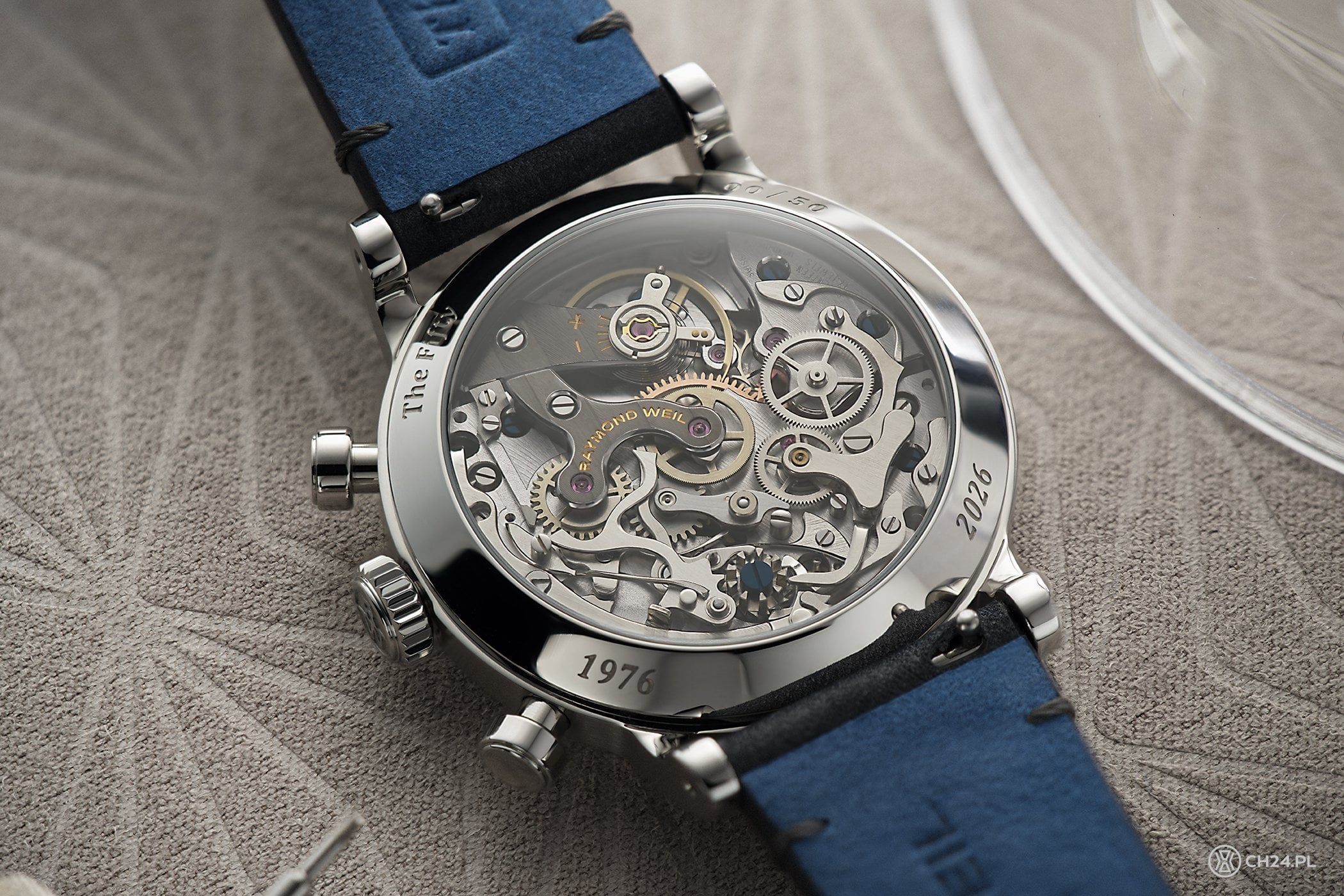 Utrzymany w stylu vintage The Fifty, ma wiele cech wspólnych z bestsellerem marki, czyli modelem Millesime (np. wyważone proporcje, sektorową tarczę oraz stonowane wzornictwo). I, podobnie jak Millesime, idealnie pasuje do estetyki „cichego luksusu”. Nie bez powodu jego wyrafinowane wzornictwo przywołuje na myśl historyczne zegarki ze stoperem, ponieważ za wskazania odpowiada w nim odrestaurowany kaliber Valjoux 23-6, który został wyprodukowany w 1976 r., tj. roku powstania firmy Raymond Weil.