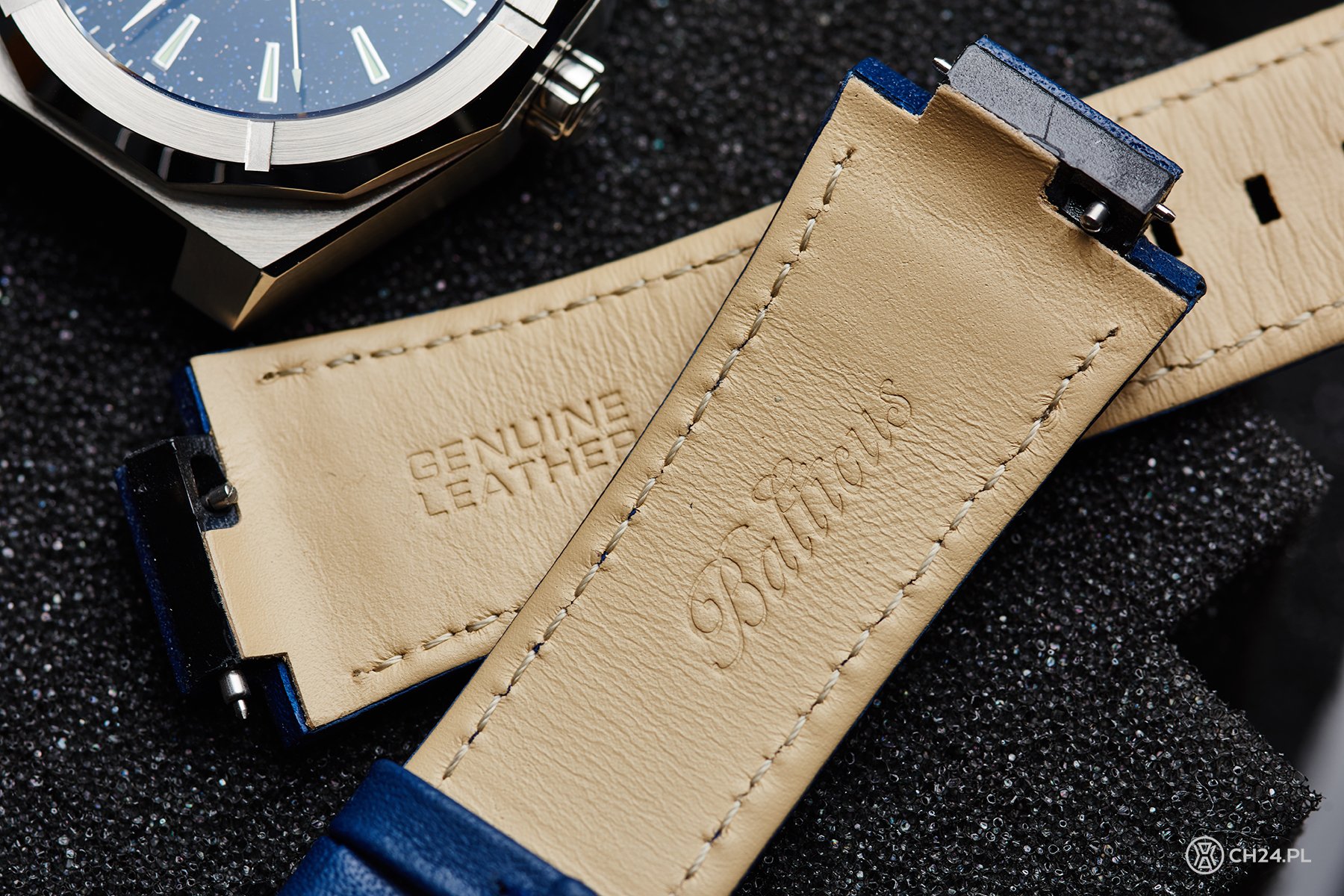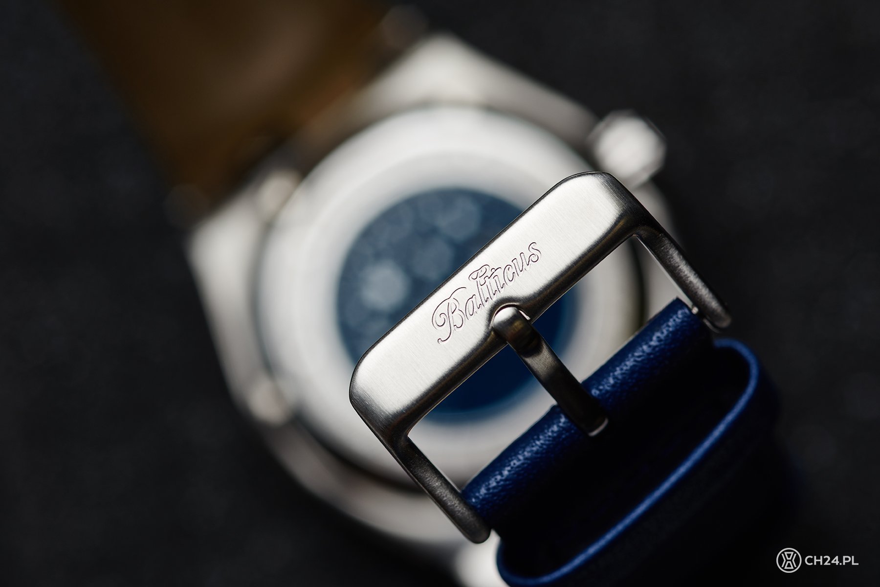 Zdecydowanie trzeba pochwalić Balticusa za ilość detali w wykończeniu koperty, niespotykaną raczej w tym przedziale cenowym. Część powierzchni jest starannie satynowana, część – w tym ranty i krawędzie – wypolerowano. Fantastycznie wygląda koronka, wypolerowana i z wytłoczoną na środku literą „B” na piaskowanym tle. Świetnie wymyślono też dekiel. Zamiast odsłaniać wątpliwej urody mechanizm albo zakrywać go laserowo grawerowanym deklem, w środek stalowego ringu namalowano lekko przezroczysty wizerunek gwiaździstego nieba. Pasuje jak ulał i tak samo wygląda.