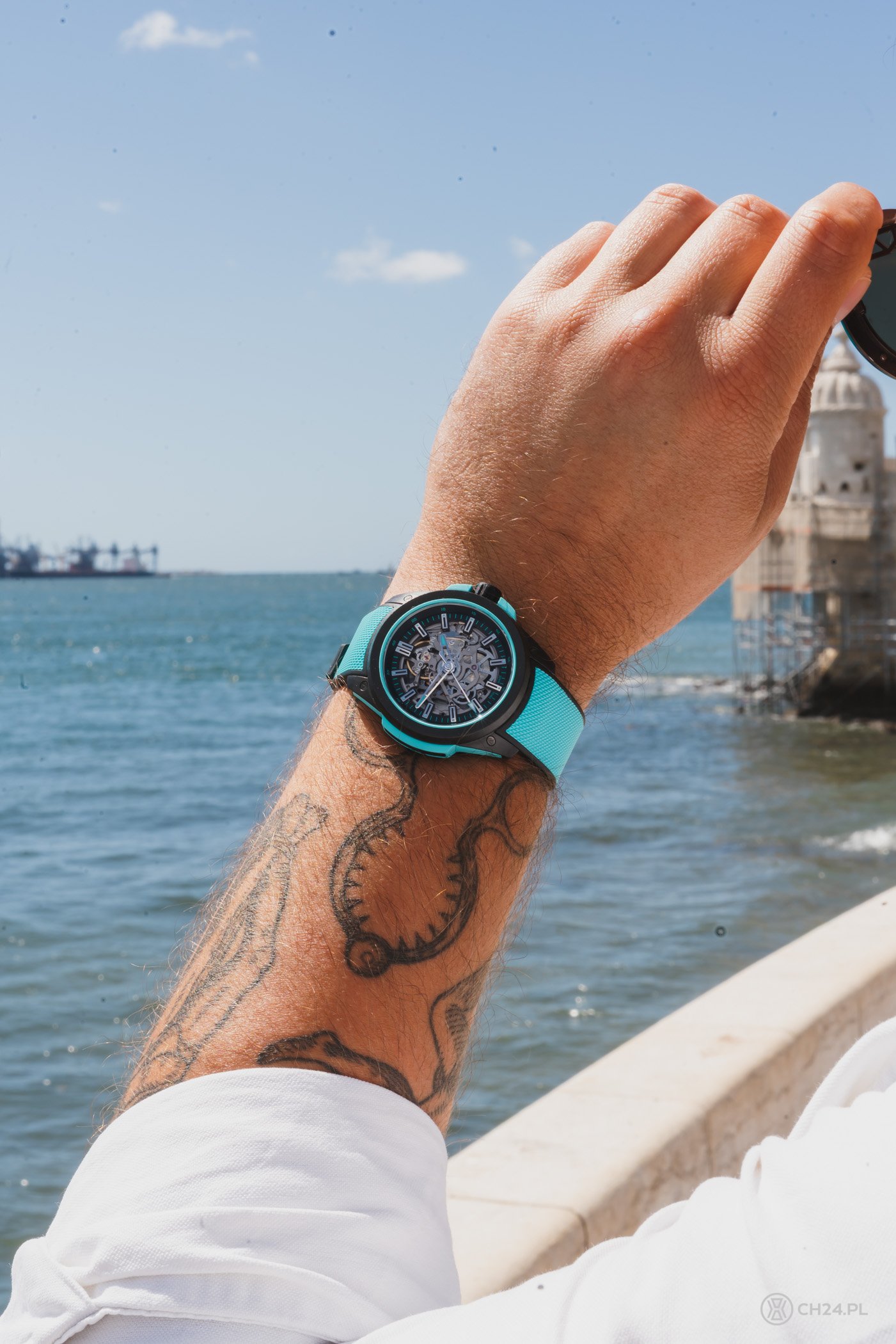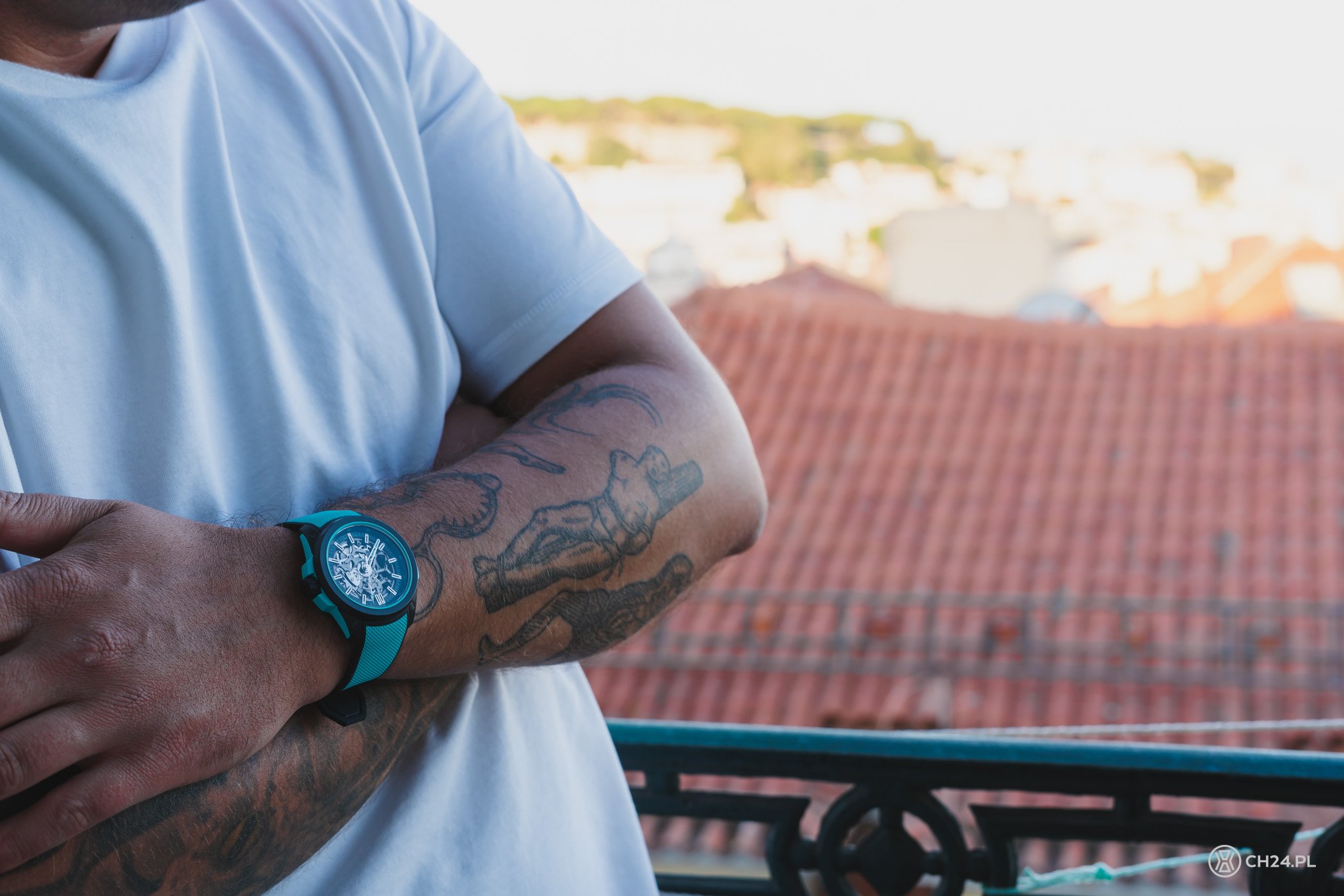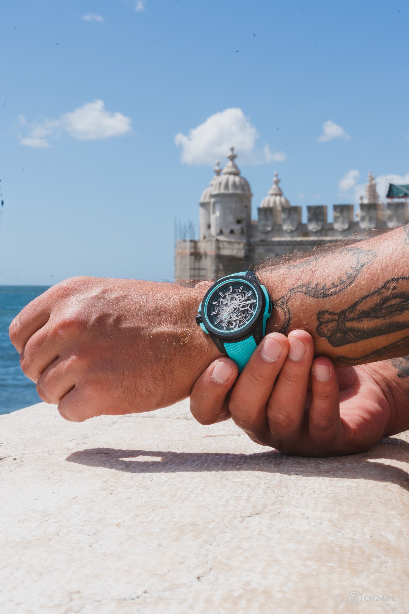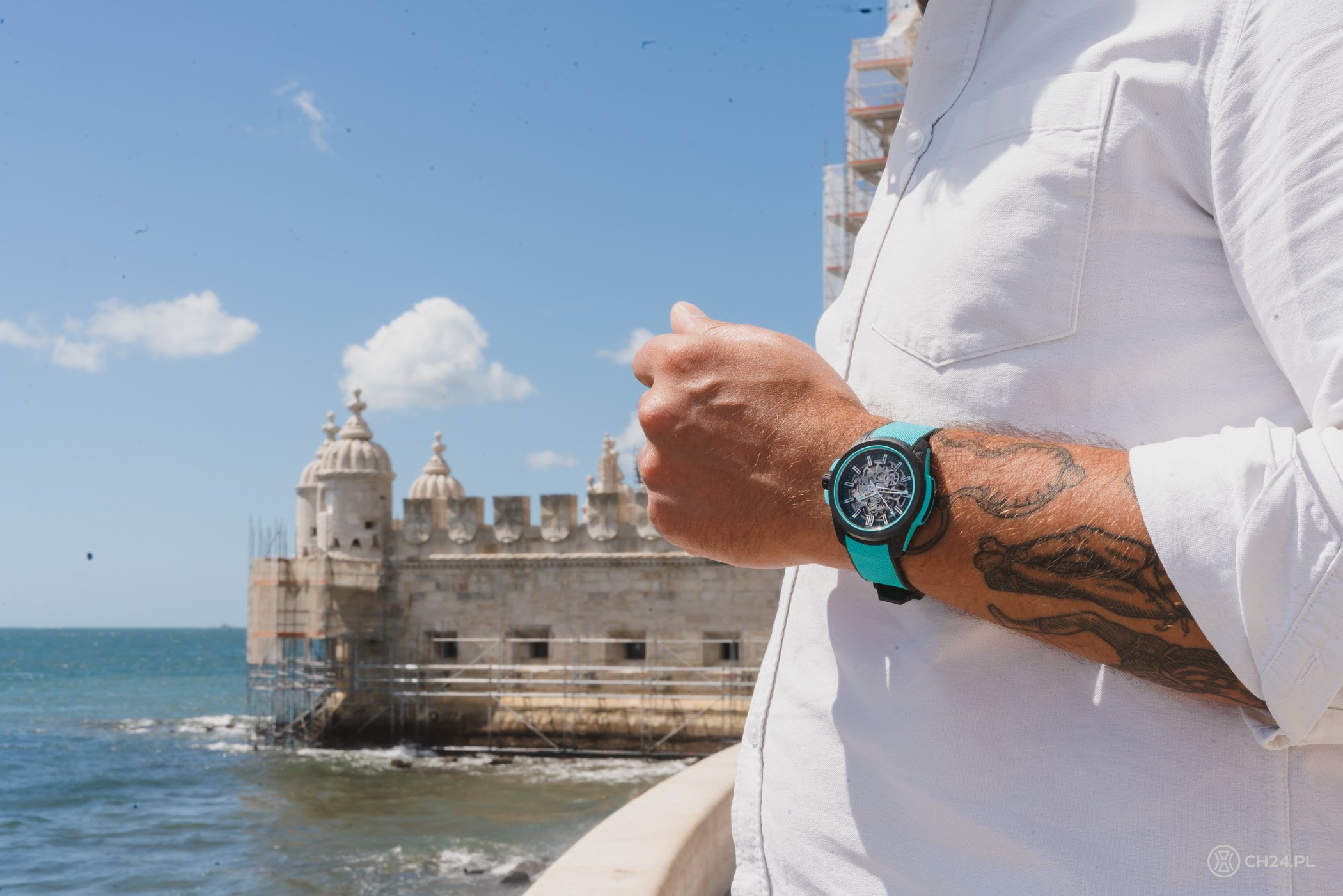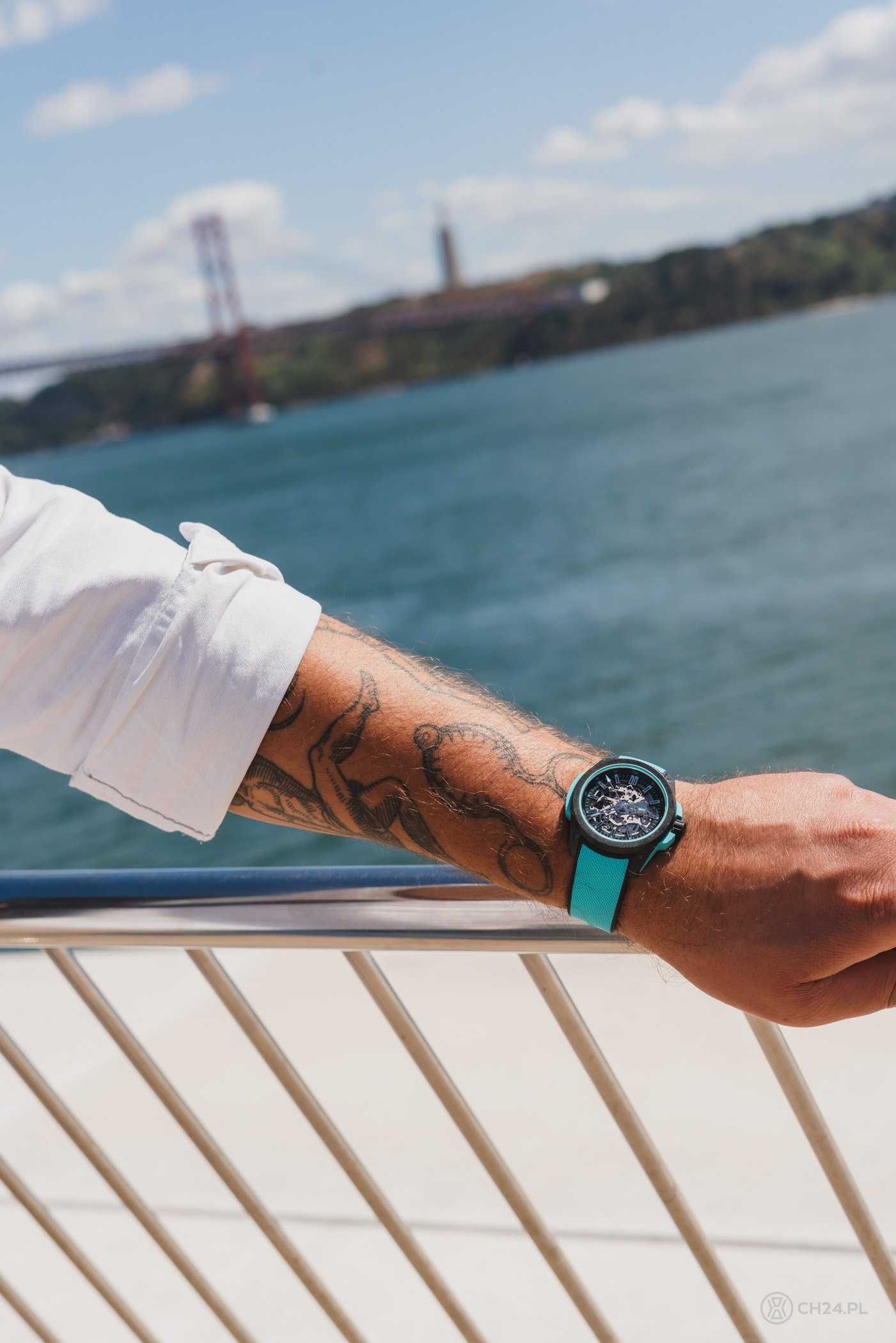 Przez tydzień mojego wakacyjnego wypadu do Portugali nie zdejmowałem Norqaina Wild One Skeleton praktycznie ani na chwilę. Doskonale sprawdził się w każdych okolicznościach, zarówno podczas eksplorowania ciasnych, ale malowniczych uliczek Lizbony, pływania w oceanie i wreszcie wieczornych eskapad gastronomicznych po mieście, z niekończącym się wachlarzem (skądinąd znakomitych) owoców morza. Powiecie, że przecież do tego nadawałby się dobrze prawie każdy inny zegarek sportowy – prawda, ale Wild One Skeleton Turqouise daje coś ekstra.
