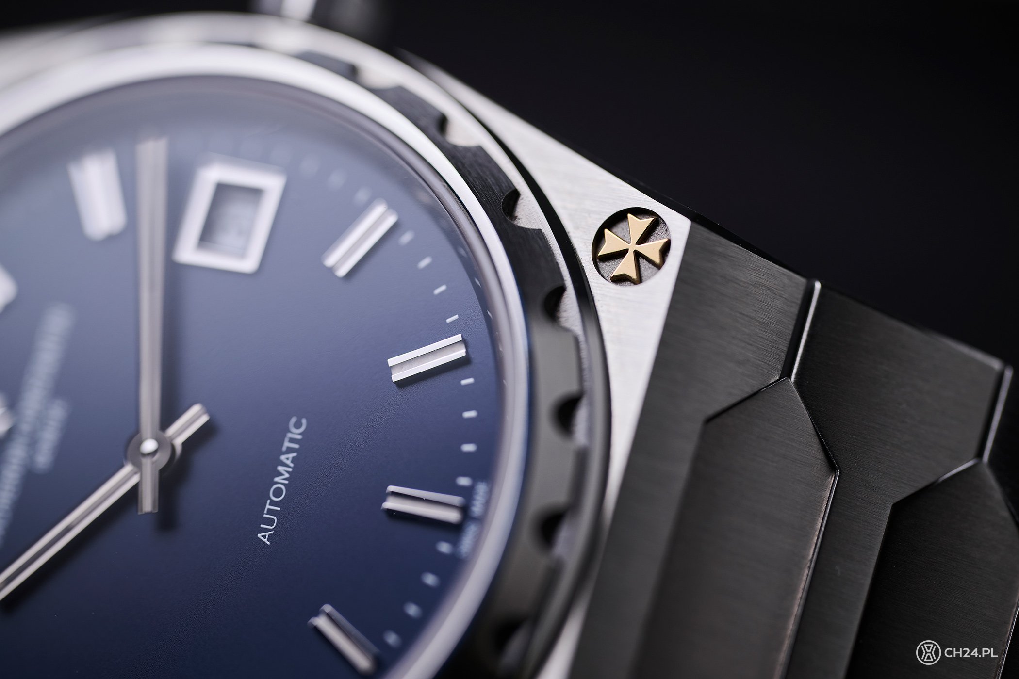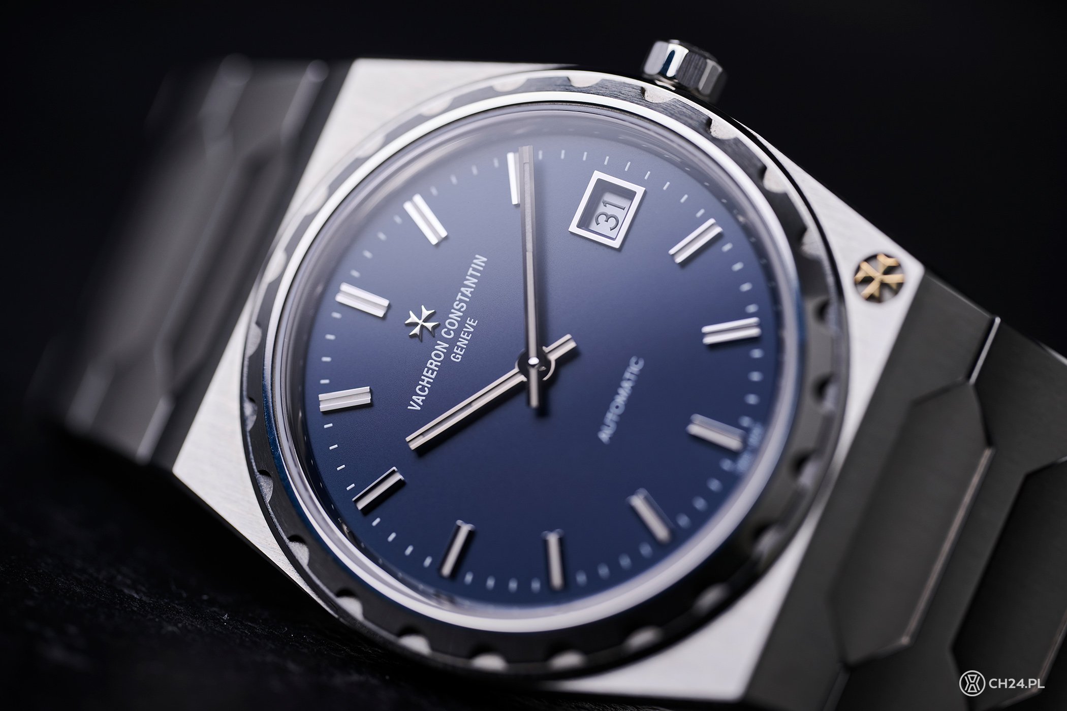O ile przy projekcie złotego 222 Vacheron Constantin postawił na idealną synergię i do złota obudowy dodał pasującą odcieniem, złotą tarczę, o tyle przy stali wybór nie był tak oczywisty. Historycznie zegarek oferowany był z kilkoma różnymi kolorami, finalnie Szwajcarzy postawili jednak na z pozoru bezpieczną opcję – niebieski. Aczkolwiek nie jest to niebieski byle jaki.
