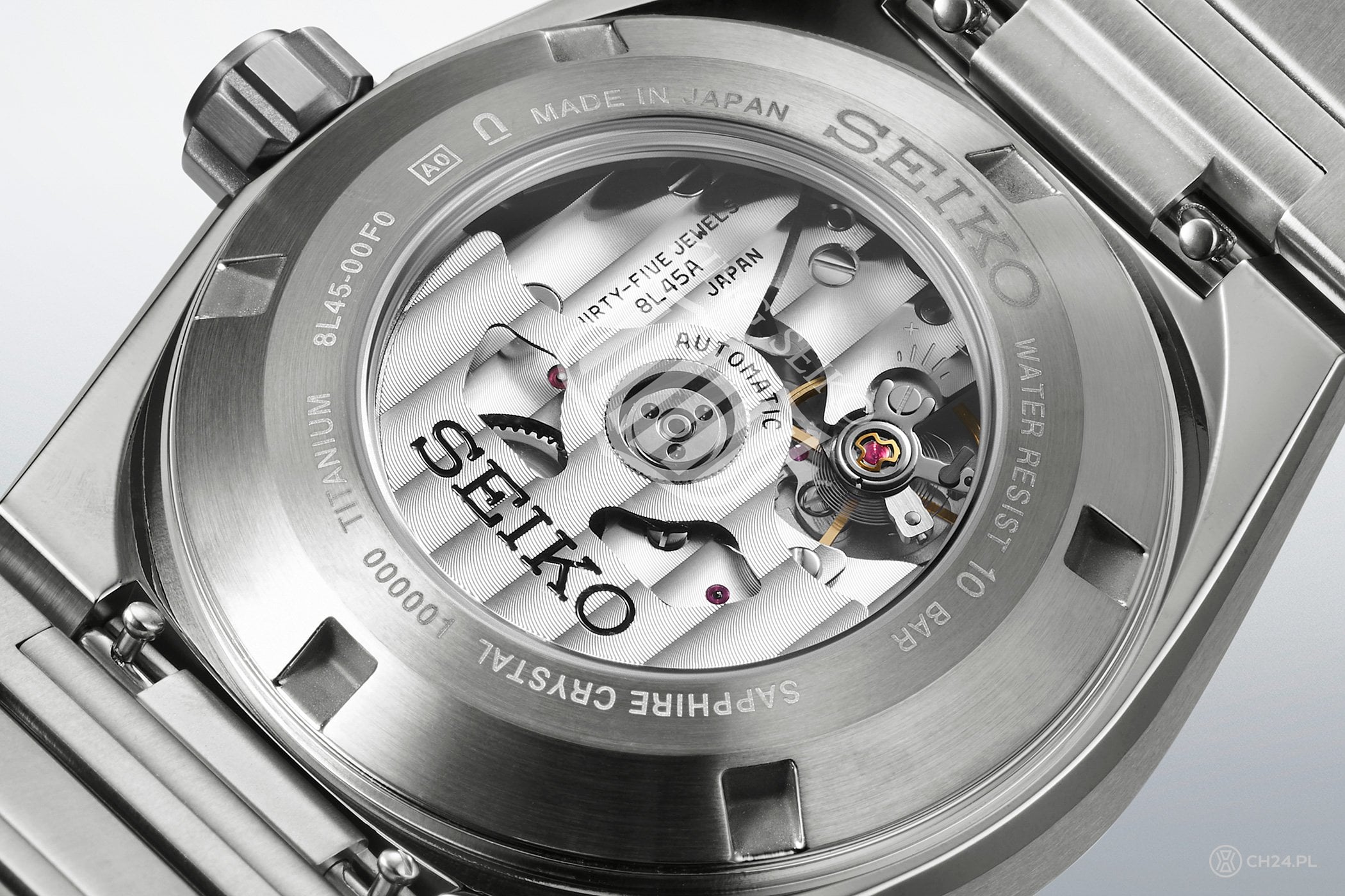 Od strony mechanicznej, nowy King Seiko Vanac Titan nie różni się od poprzednich wersji: w kopercie pracuje, widoczny pod przezroczystym deklem, kaliber 8L45 z automatycznym naciągiem, datownikiem na godz. 3., funkcją zatrzymania sekundnika oraz 72-godzinną rezerwą chodu.