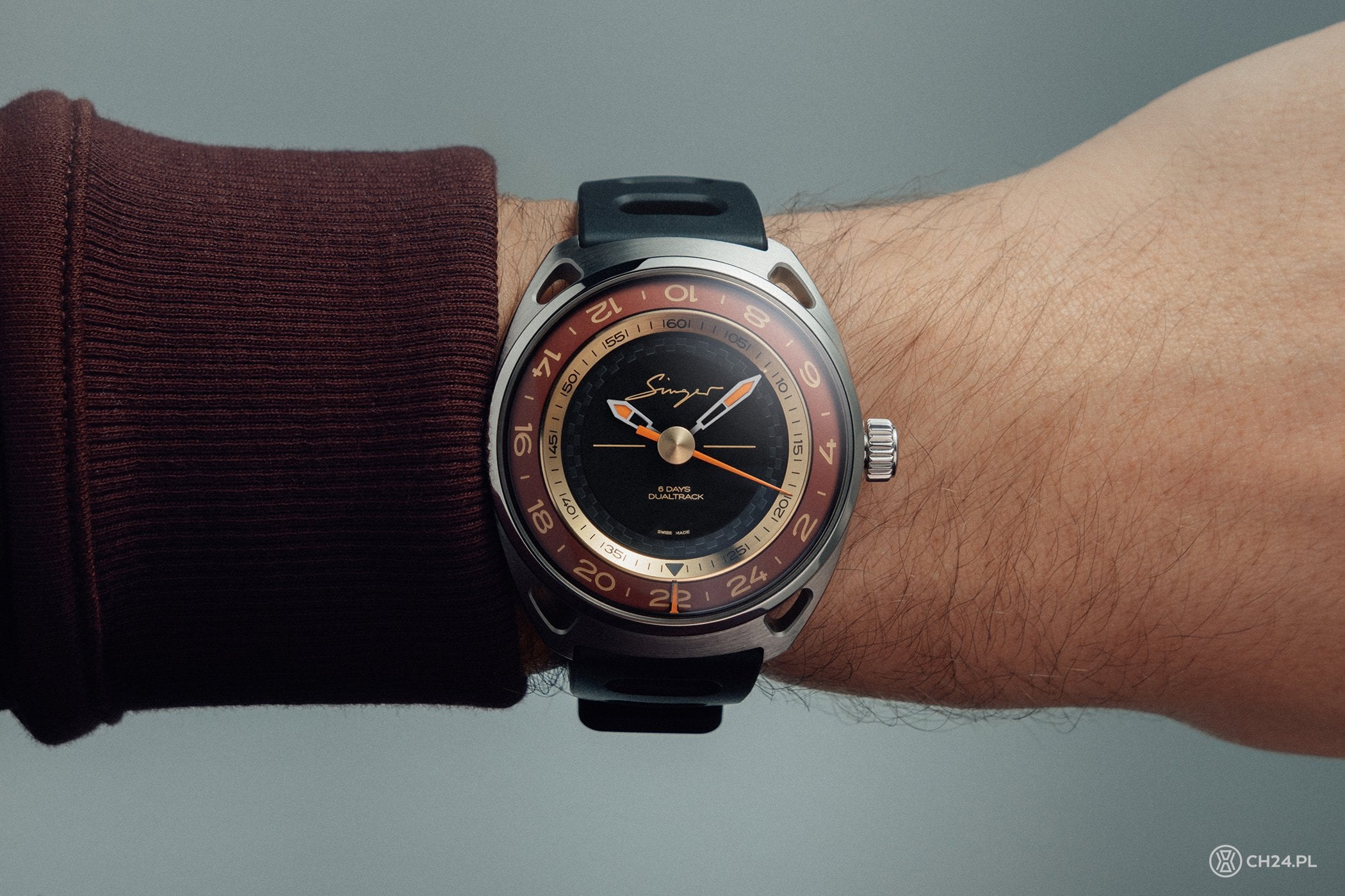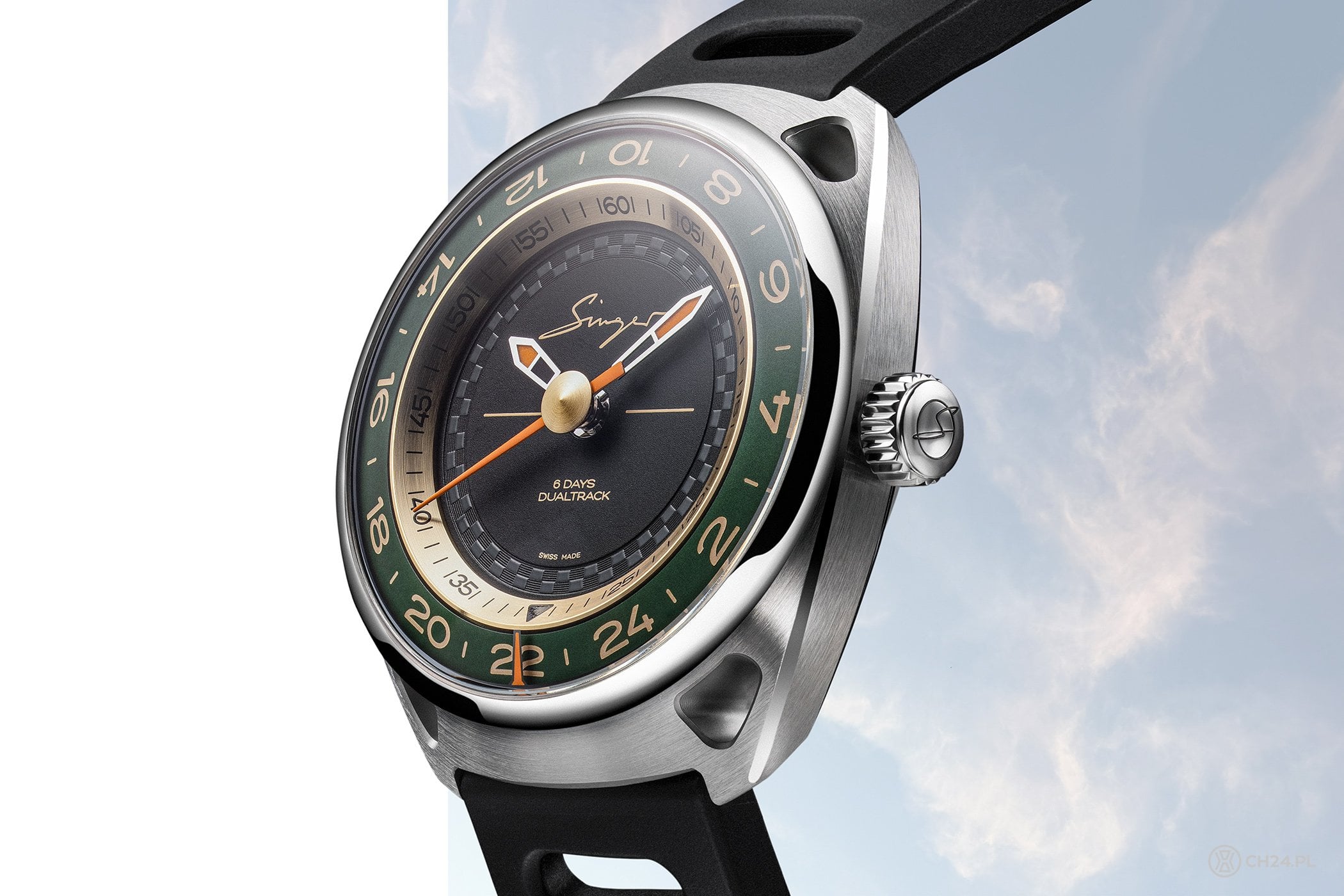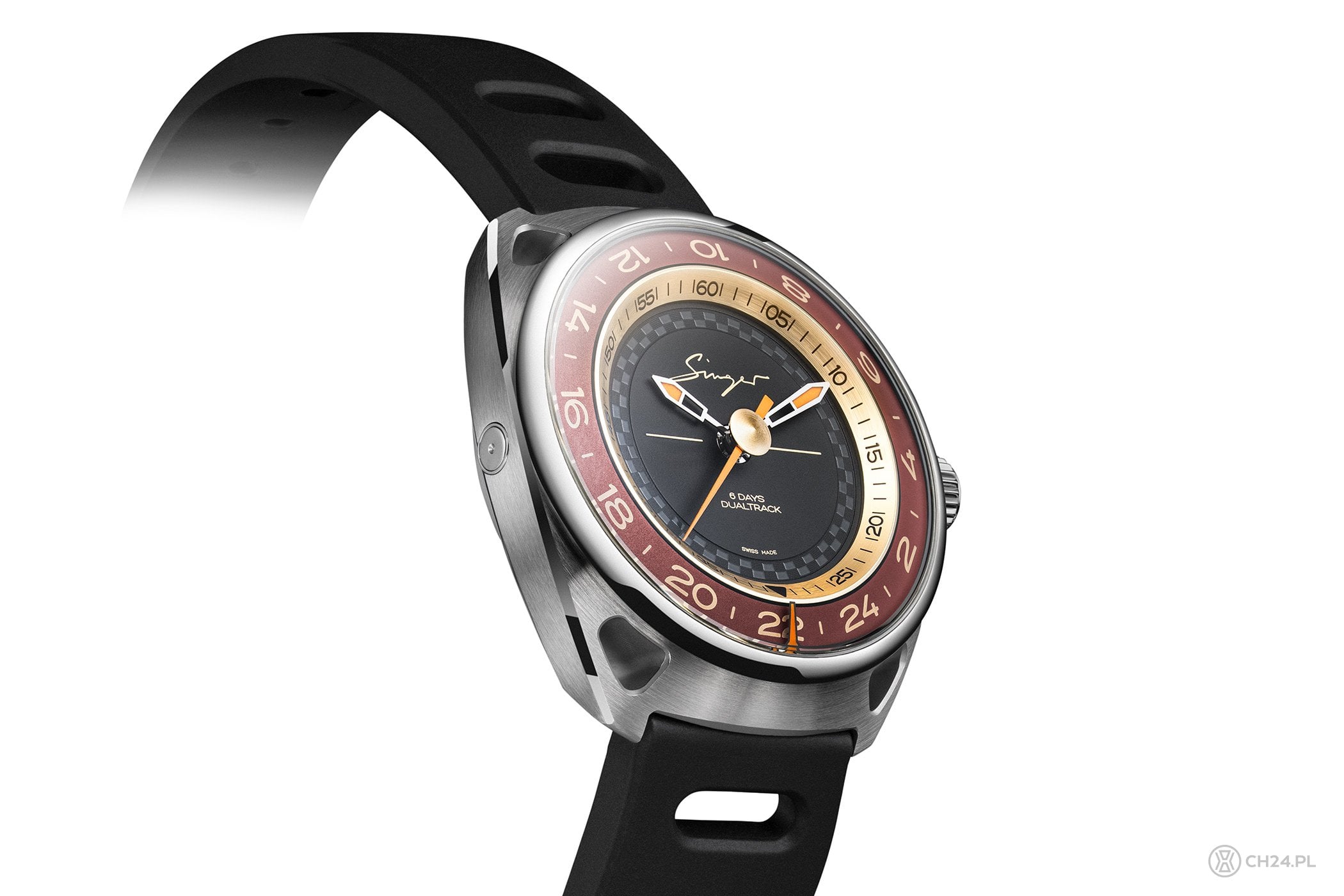 Projektując pierwszy model Singer Reimagined, Marco Borraccino – założyciel i główny projektant – dużo zaryzykował. Zaryzykował w tym sensie, że postawił na projekt bardzo specyficzny, charakterystyczny i osobliwy zarazem, a to grozi byciem zakładnikiem własnego sukcesu. Zwłaszcza, że Singer okazał się marką hot wśród kolekcjonerów, a połączenie oryginalnego projektu, koncepcji i świetnego mechanizmu od studia Agenhor trafiło w przysłowiową dziesiątkę. Singer Rimagined zyskał niemal natychmiastowe uznanie i szereg branżowych nagród (w tym nasz „Zegarek Roku CH24”). Na kanwie premierowego modelu Track 1, marka buduje swoje portfolio o kolejne interesujące rozwiązania i interpretacje znanych komplikacji. Najnowszy członek zegarkowego garażu Singera na warsztat bierze wskazanie czasu w drugiej strefie.