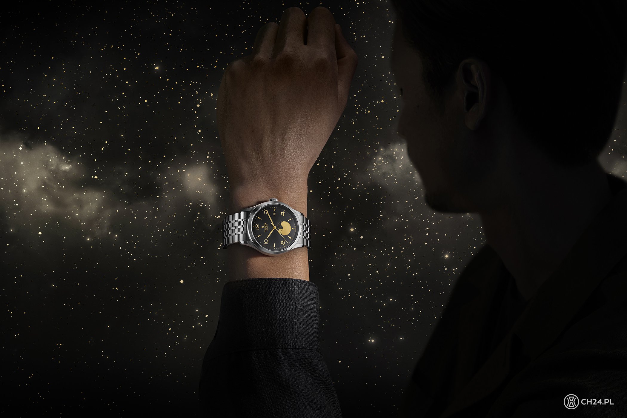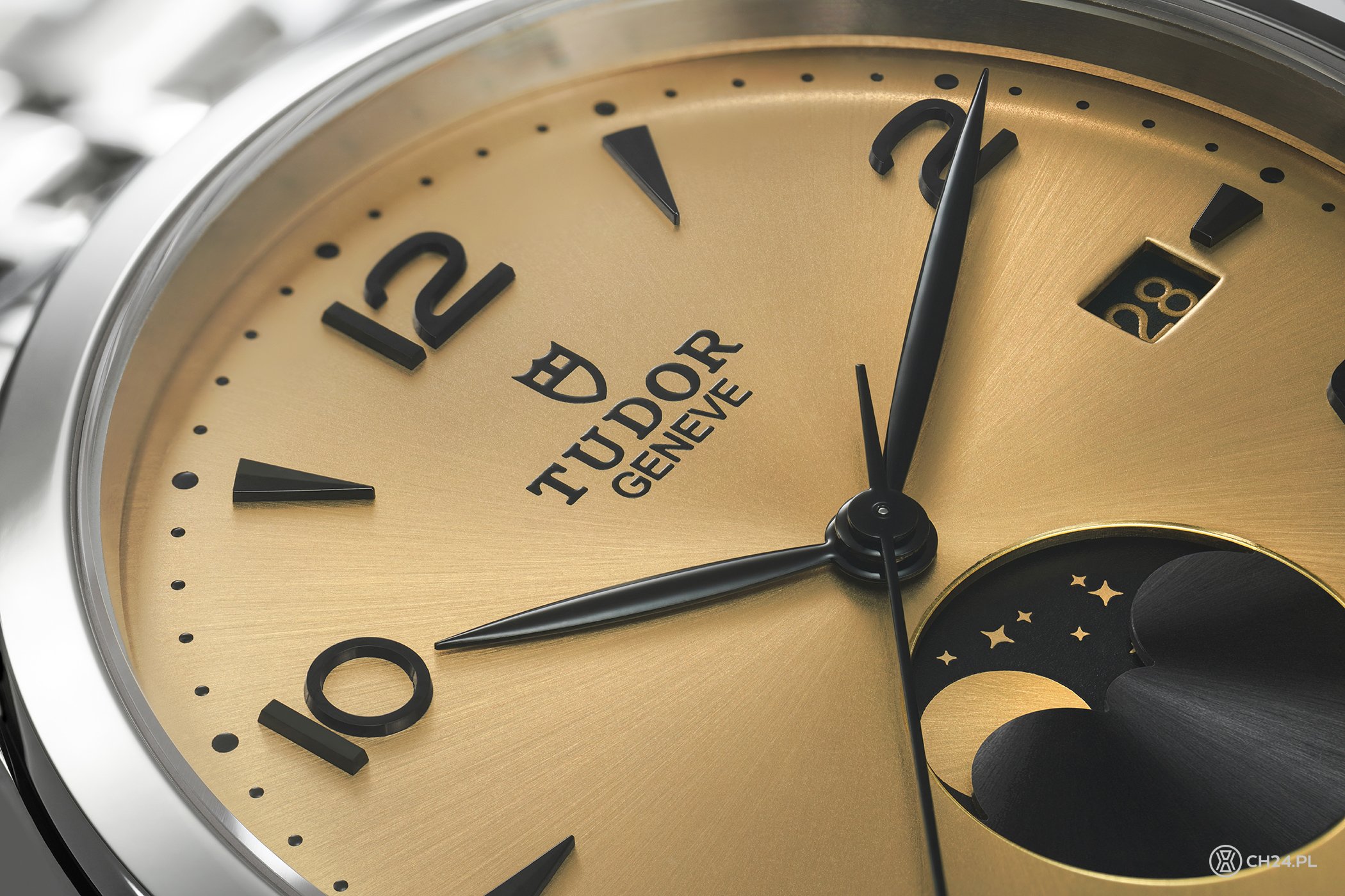 Clou nowego zegarka stanowi tytułowe wskazanie faz Księżyca – pierwsze takie w historii firmy. Tudor rozwiązał je klasycznie, w formie ulokowanej w dolnej części cyferblatu, okrągłej tarczki z wycięciem. W wycięciu tym obraca się dysk z wizerunkiem księżyca, odmierzający dokładny cykl, liczący w przybliżeniu 29 dni. Niestandardowe są za to same cyferblaty, a konkretnie ich kombinacje kolorystyczne. O ile purystom zapewne do gustu najbardziej przypadnie połączenie niebieskiej tarczy i srebrnych akcentów, o tyle zdecydowanie ciekawiej wypada czerń zestawiona ze złotymi aplikacjami albo szampański kolor z czernią – autorska propozycja Chou.