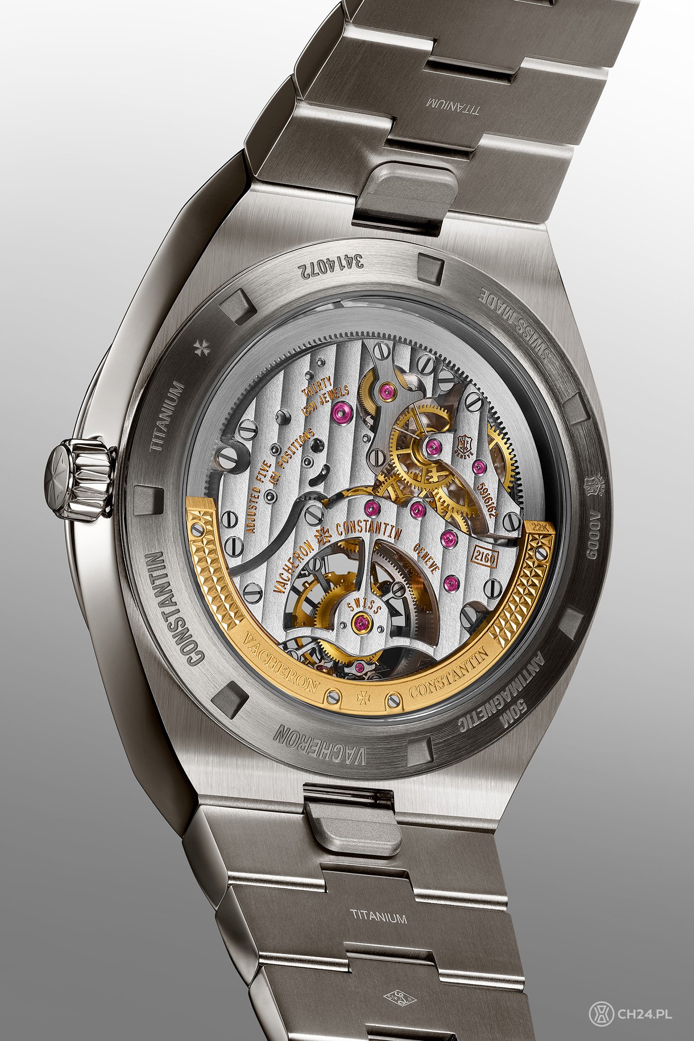 Podobnie jak w przypadku poprzednika, nowy Overseas Tourbillon ma kopertę o średnicy 42,5 mm oraz grubości zaledwie 10,39 mm. Piszę zaledwie, bo należy wziąć pod uwagę, że napędzający całość mechanizm ma automatyczny naciąg oraz tourbillon. Jak osiągnięto taki rezultat? Vacheron Constantin postawił na kaliber 2160 z rzadko spotykanym peryferyjnym rotorem. Tu wykonany jest on ze złota, częściowo giloszowany i nakręca sprężynę w dwóch kierunkach. Cały mechanizm ma niespełna 5,65 mm grubości i liczne zdobienia (m.in. groszkowana płyta główna, mostki ozdobione wzorem Côtes de Genève, ręcznie polerowane krawędzie, polerowane śrubki), które zapewniły mu certyfikat Pieczęci Genewskiej. Pracę kalibru – dzięki poruszającemu się tylko przy zewnętrznej części wahnikowi – można w pełni podziwiać przez transparentny dekiel. Werk składa się ze 188 komponentów, jest taktowany na 2,5 Hz, a po pełnym nakręceniu sprężyny może odmierzać czas przez 80 godzin.
