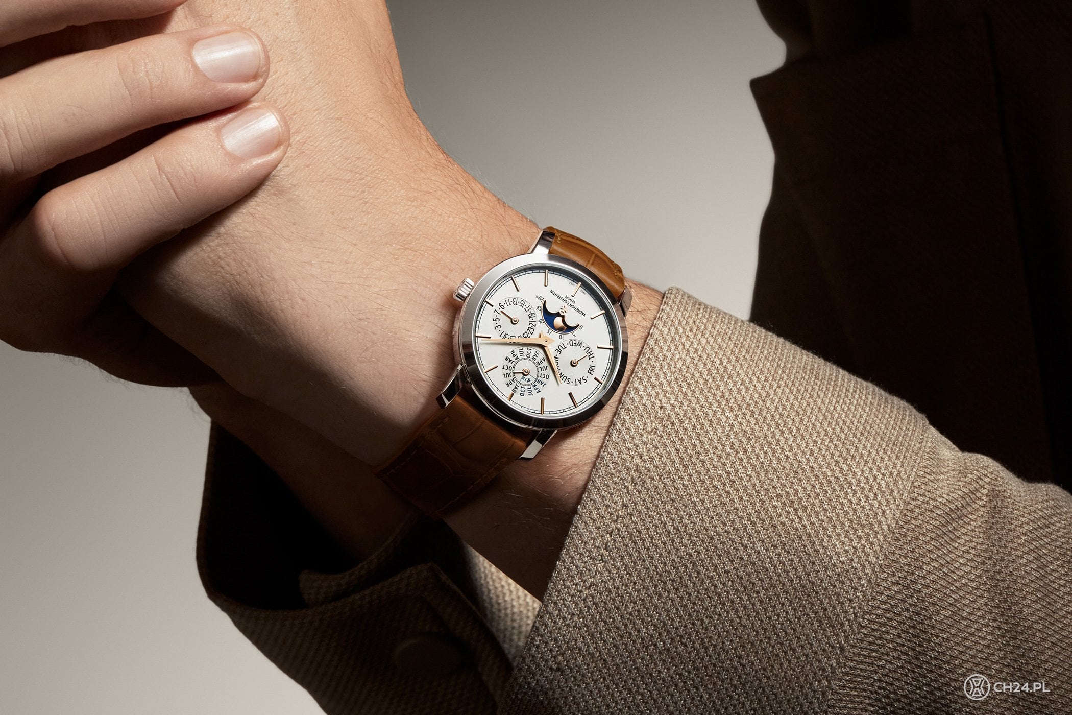 Każda z trzech wersji modelu Traditionnelle Perpetual Calendar Ultra-Thin jest oferowana z paskiem uszytym ze skóry aligatora. Może być w kolorze granatowym (wariant z różowego złota i wersja biżuteryjna) lub jasnobrązowym (wariant z białego złota). I jeszcze ceny: oba modele z gładkim pierścieniem kosztują tyle samo, czyli 86 500 CHF (~392 000 PLN), a za wersję biżuteryjną trzeba zapłacić 90 500 CHF (~410 000 PLN).