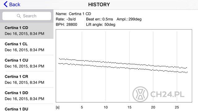 - beat error, czyli mówiąc prosto – pomiar czasu pomiędzy „tik” i „tak” oraz ich porównanie, które w idealnym środowisku powinno dać taki sam rezultat, a tym samym wynik powinien wynieść zero.